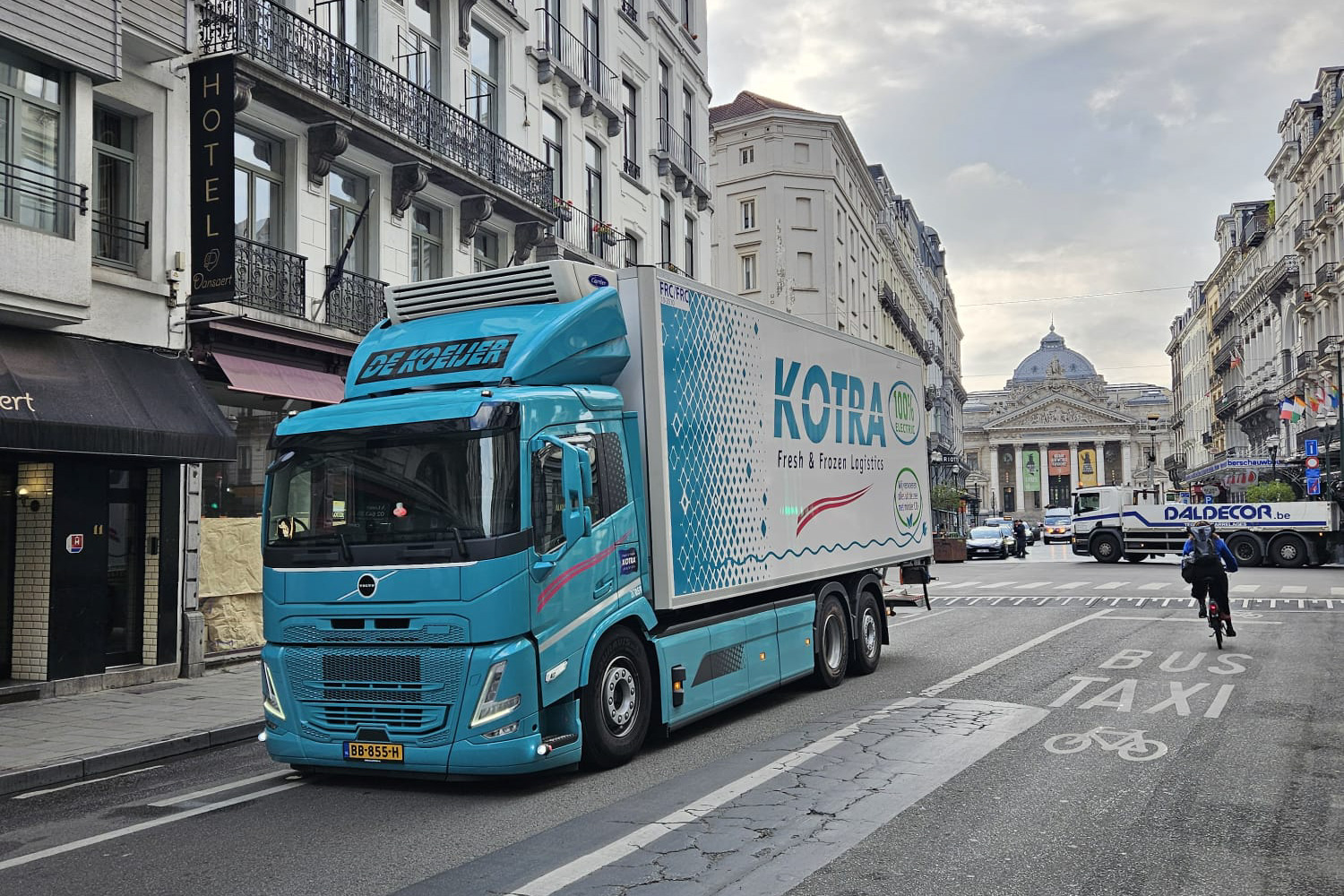 Kotra Logistics, specialist in vervoer, opslag en handling van verse en diepgevroren levensmiddelen, beschikt over ruim 220 trekkende en 370 getrokken eenheden en is actief in heel Europa. “Op veel internationale routes is elektrisch rijden nog lastig”, zegt Van Nieuwenhoven. “Maar op regionale ritten, zoals die naar Brussel, kan het al prima. Dit is voor ons een mooie stap om ervaring op te doen en dat is precies wat we nu willen.”