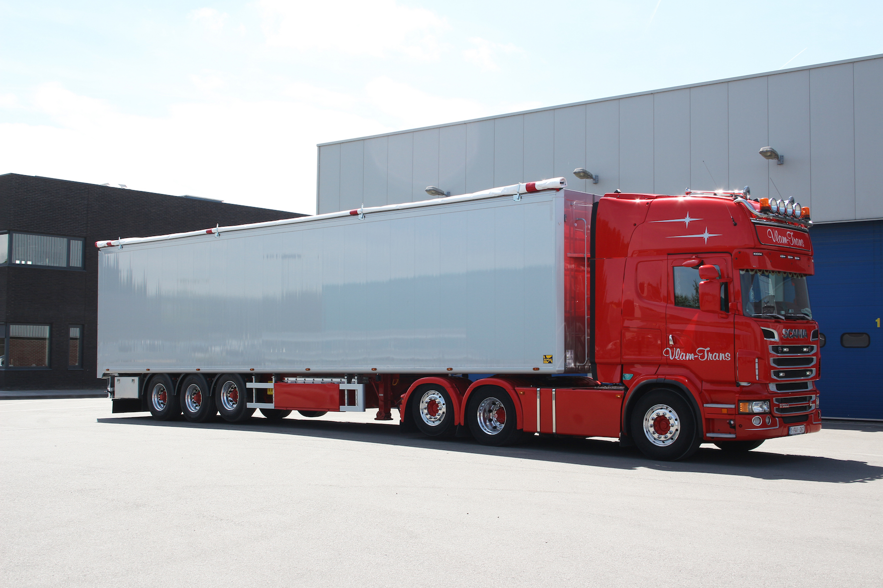Zo ook een nieuw afgeleverde Kraker CF-200. Vlam-Trans heeft gekozen voor veel mogelijkheden op de trailer. Om het gewicht zo laag mogelijk te houden, is er onder andere voor een light-versie van het meeloopschot gekozen. Het vloersysteem, een geribde 6 mm-vloer, is voorzien van kamgeleiding en het rolzeil heeft een snelsluiting.