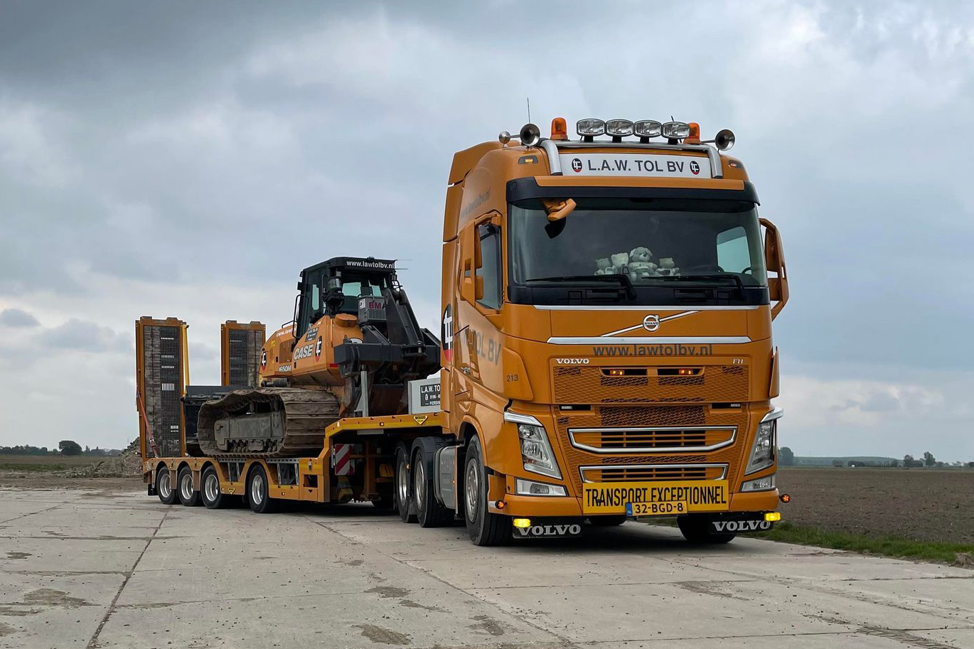 Een divers wagenpark met grondverzetmachines heeft een oplegger nodig die van alle markten thuis is. Daarom heeft L.A.W. Tol B.V. geïnvesteerd in een nieuwe Broshuis 4-assige semi dieplader met kleppen.