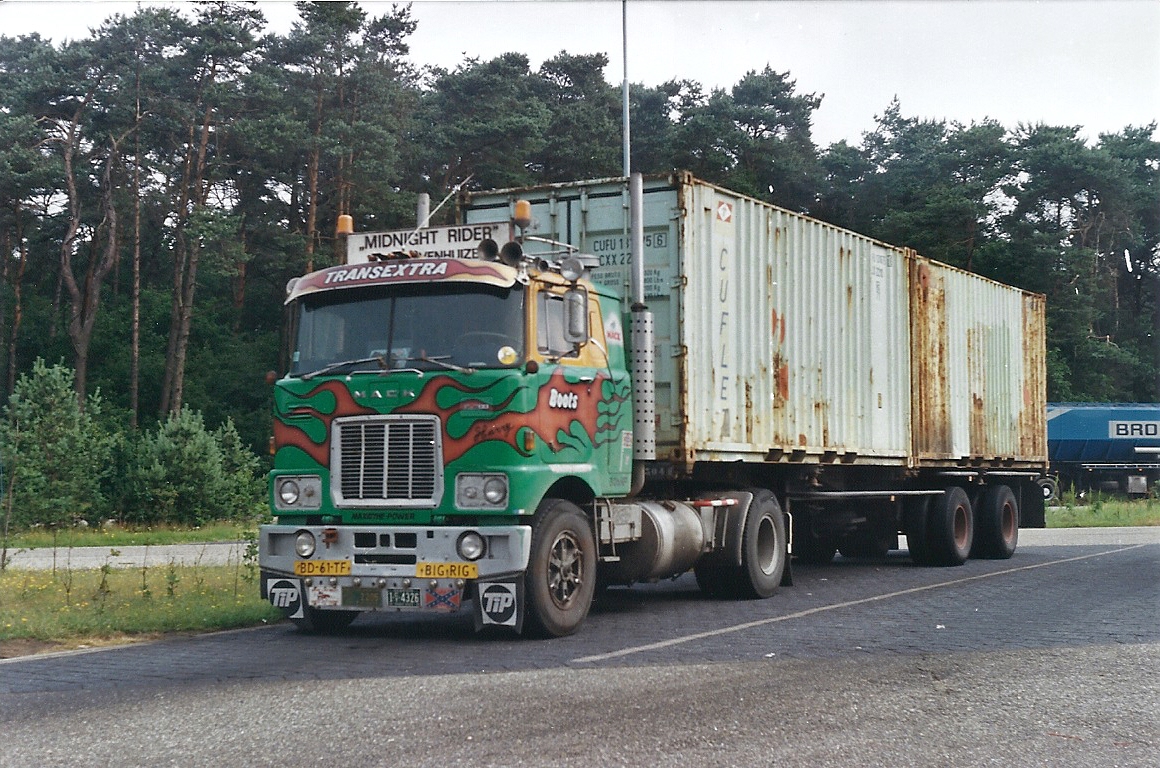 Truckstar Festival. De firma Boots in Venhuizen reed destijds met twee Mack’s F700, allebei voorzien van de nodige accessoires en vlammen op de cabine. Ooit reed de firma met de Mack’s op het Midden-Oosten maar vanaf 1980 werden ze ingezet voor het containervervoer.