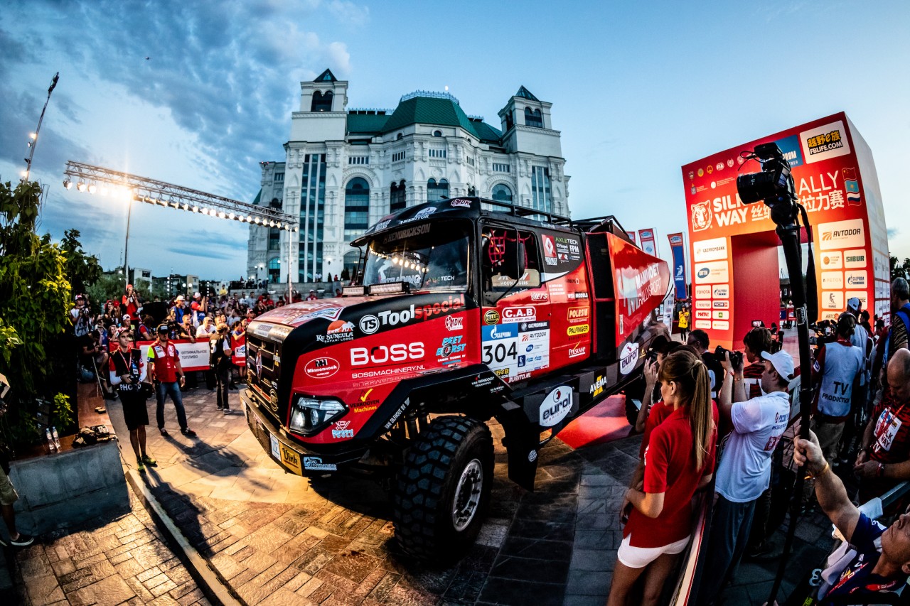 Openingsfoto: Bij de start van de Silk Way Rally in Astrakhan had het team van Mammoet Rallysport nog goede hoop op een hoge klassering.