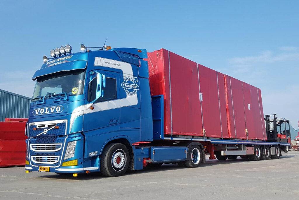 Roelof Blaauw – verantwoordelijk voor onder meer planning en onderhoud – vertelt: “We werken veel, eigenlijk voor zo’n 85 procent, in het uitzonderlijk vervoer. In de prefab woningbouw werken we bijvoorbeeld met modules van 3,33 meter hoog. Om die zo efficiënt mogelijk te vervoeren, willen we de totale transporthoogte onder de 4,40 meter houden. Daartoe was een extra lage trailer vereist, die door Pacton voor ons op maat is gerealiseerd.”