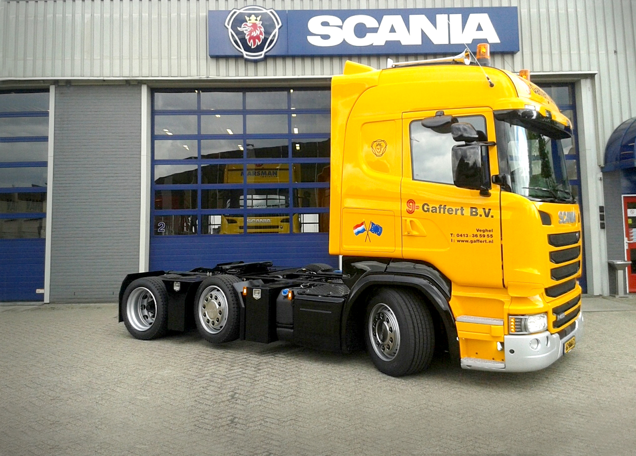 Transportbedrijf Gaffert B.V. uit Veghel heeft twee Scania R450 voorloopas-trekkers in gebruik genomen met een schotelhoogte van 88 centimeter.