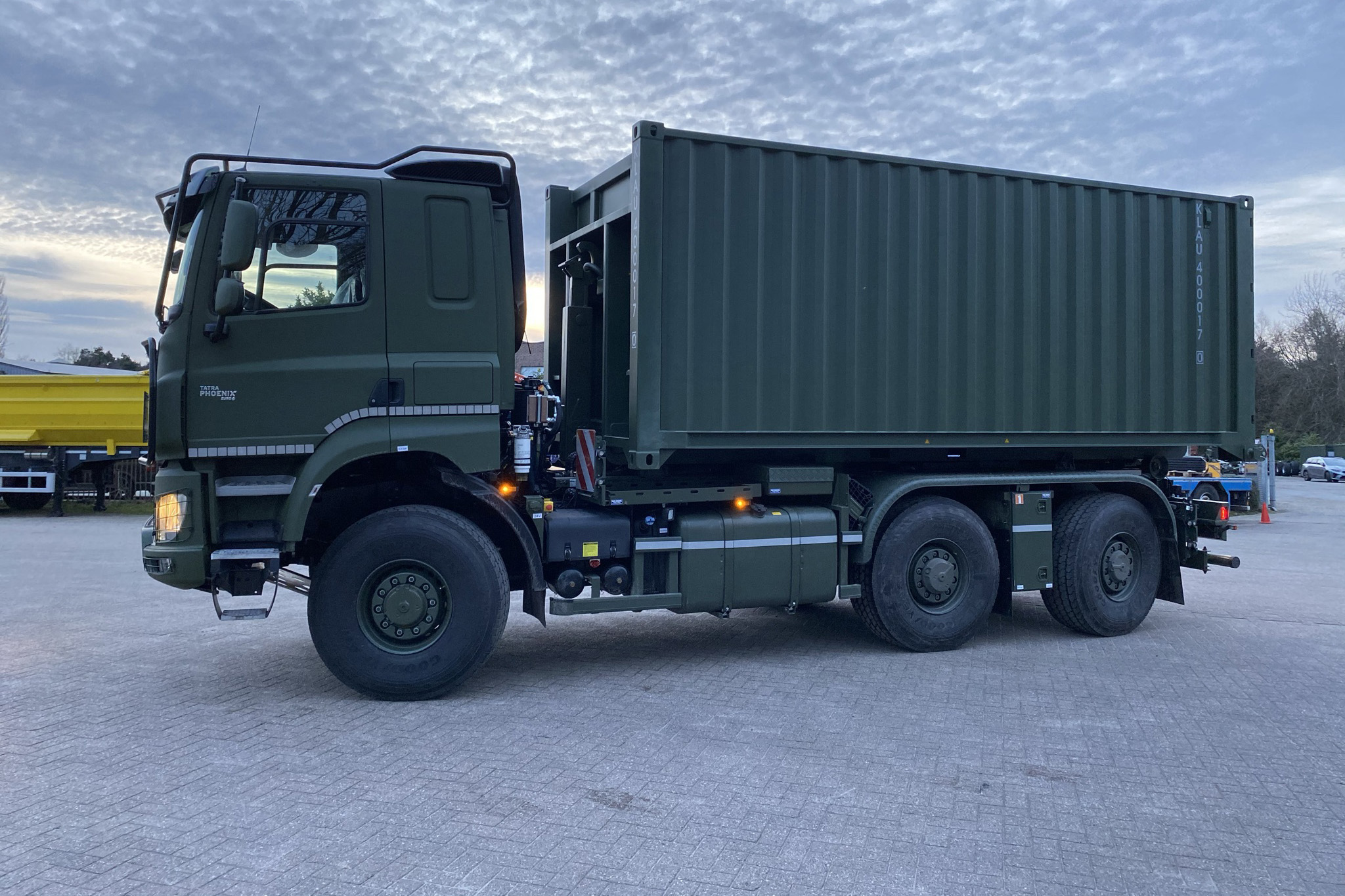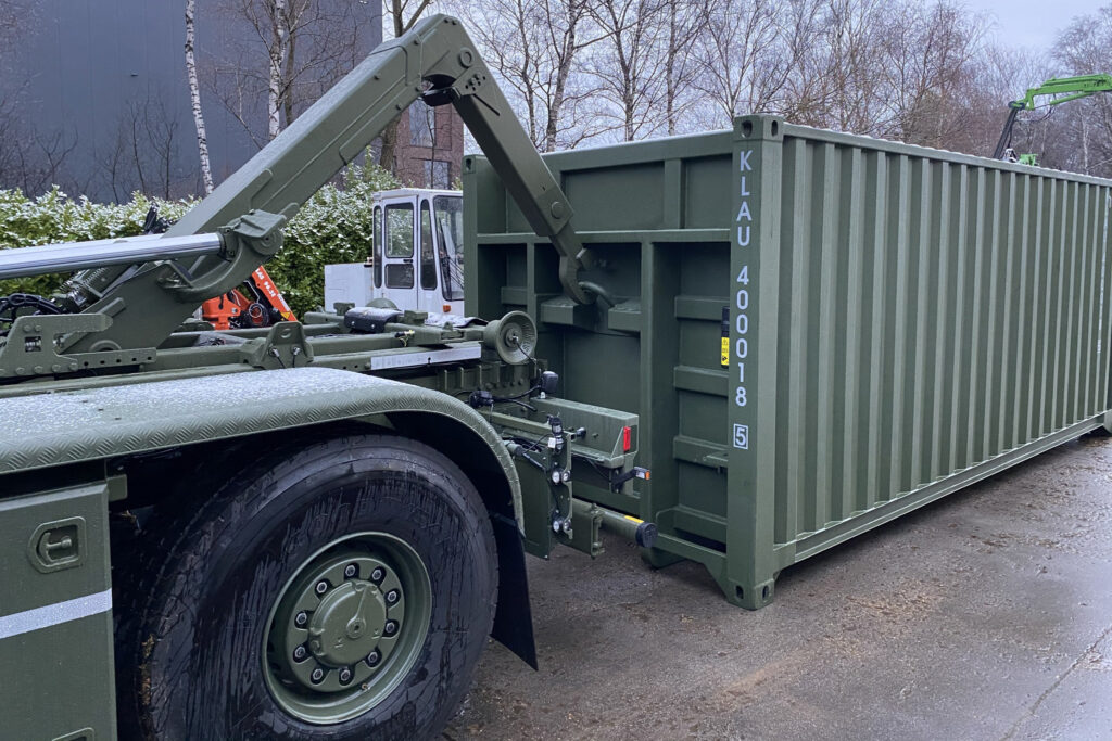 Joris Cockx, Sales & Product Manager Hyva Benelux: “Voor de ruige offroad-omstandigheden zijn de Titan haakarmen uitgerust met zowel mechanische als hydraulische containervergrendeling om ervoor te zorgen dat de lading te allen tijde op zijn plaats wordt gehouden. Tevens hebben de haakarmen een extra zink behandeling gekregen in combinatie met de in de fabriek aangebrachte eindlak. Dat is conform de specificatie van de Koninklijke Landmacht, om een zeer hoge corrosiebestendigheid te creëren.”