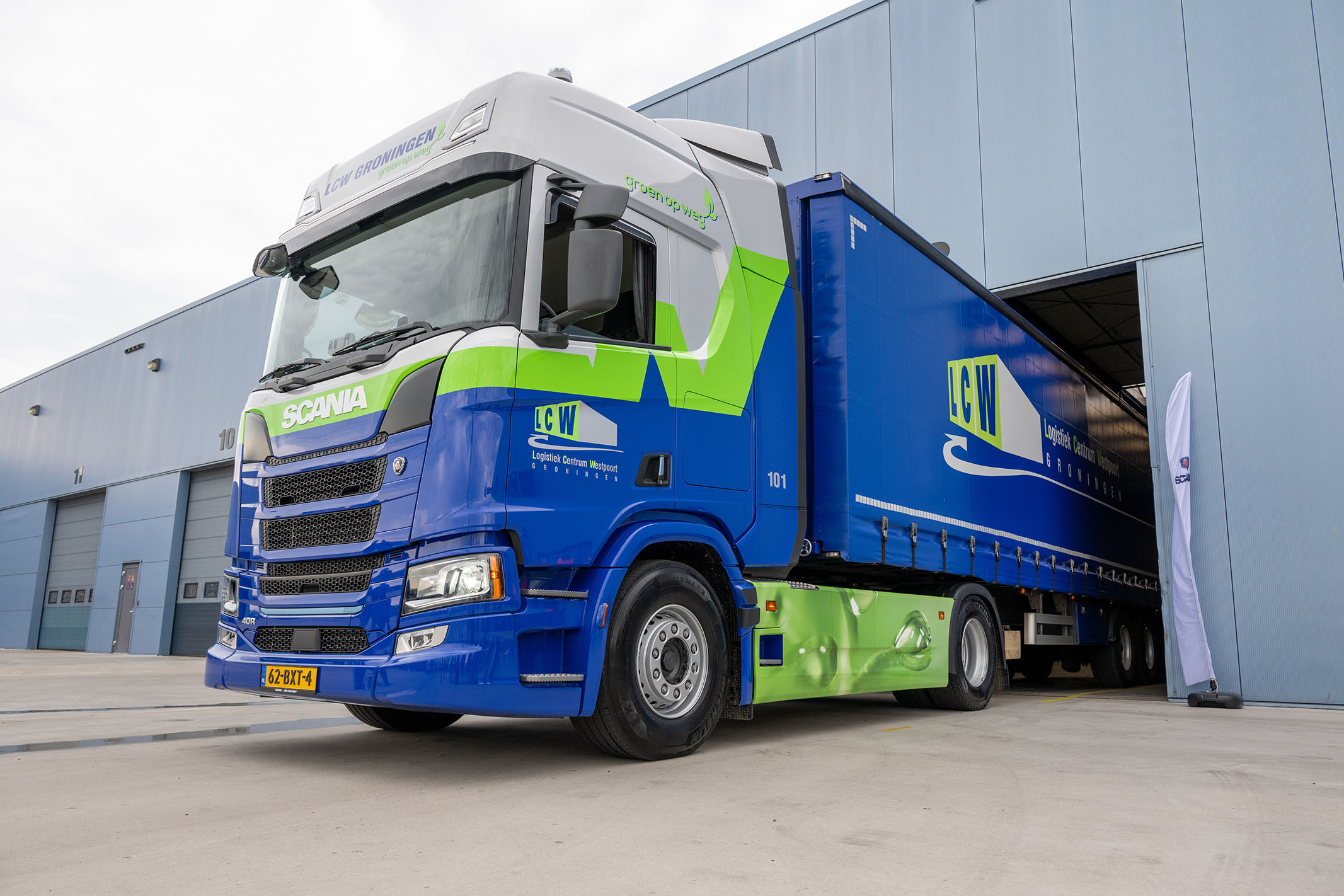 Een primeur voor LCW Groningen: de logistieke dienstverlener ontving vandaag de sleutels van Nederlands eerste Scania 40R BEV uit handen van Janko van der Baan, Managing Director Scania Nederland.