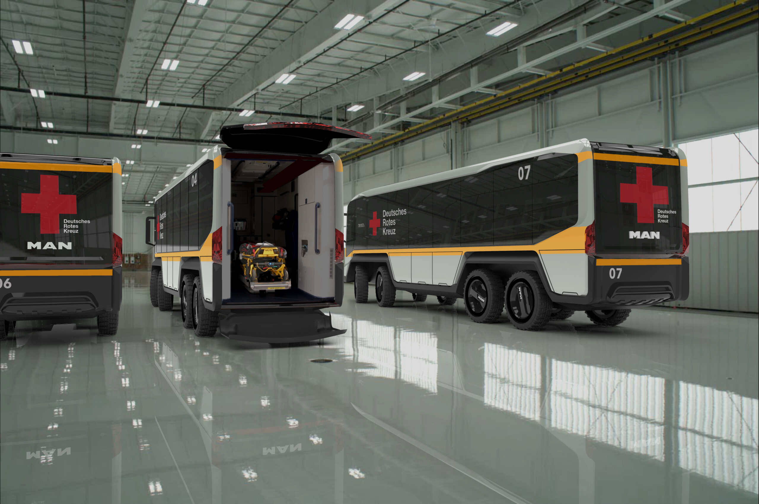 In het kader van zijn afstudeerproject ontwierp student Johannes Schmutzler een flexHVC, een ‘Flexible Humanitarian Vehicle Concept’. Bij MAN zagen ze er wel wat in en bouwden ze een touringcar om tot flexHVC.