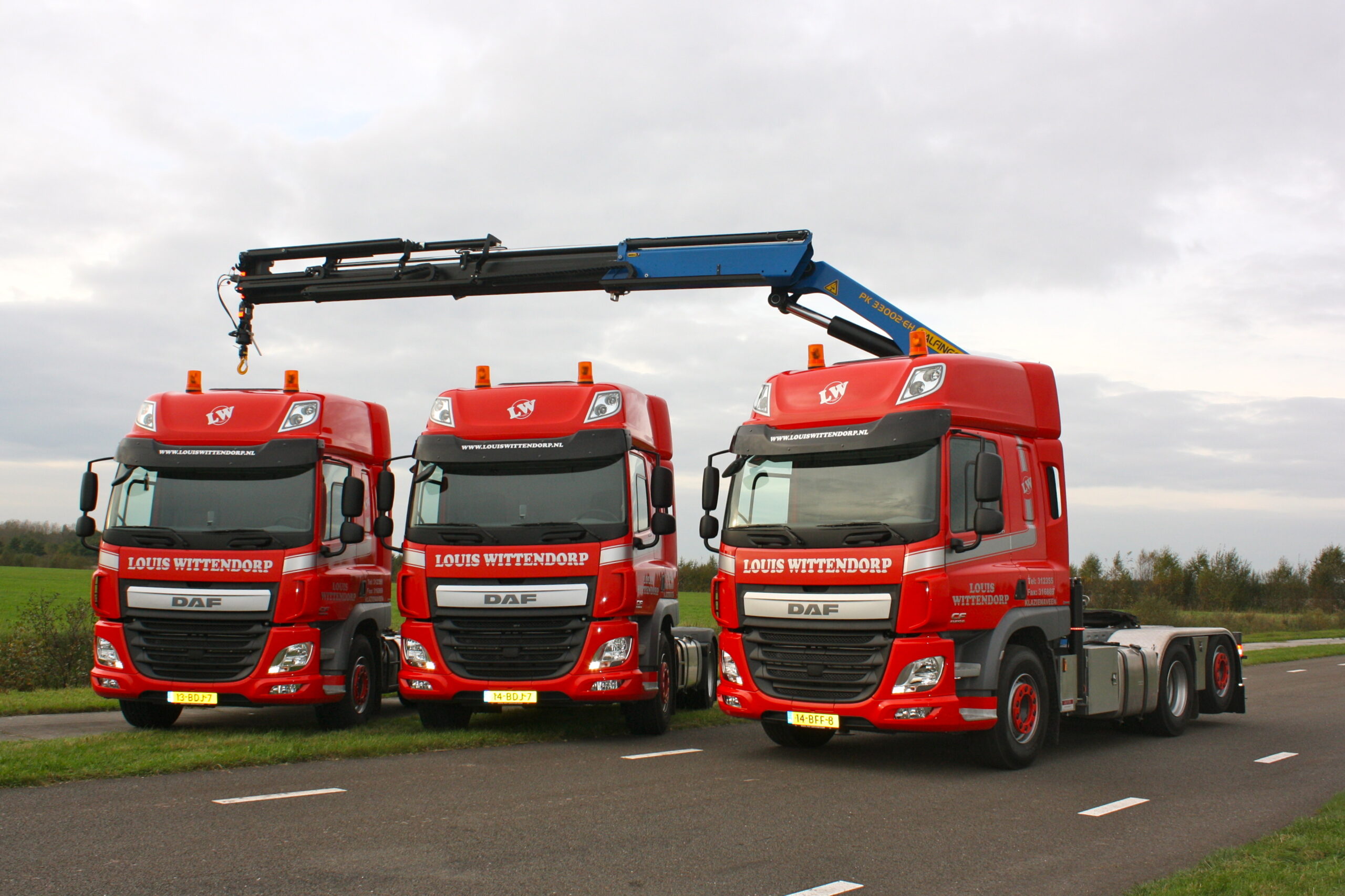 Drie nieuwe DAF CF Space Cab trekkers zijn onlangs door Reinder Dorenbos; verkoper bij Sent Waninge, overhandigd aan Louis Wittendorp, directeur van Louis Wittendorp Transport- en Aannemersbedrijf. De in totaal acht trucks van Wittendorp worden ingezet voor het transport van onder andere steigermateriaal los gestorte producten, bronbemalingpompen, charter transport voor de olie industrie, containerwerkzaamheden en afvalverwerking.