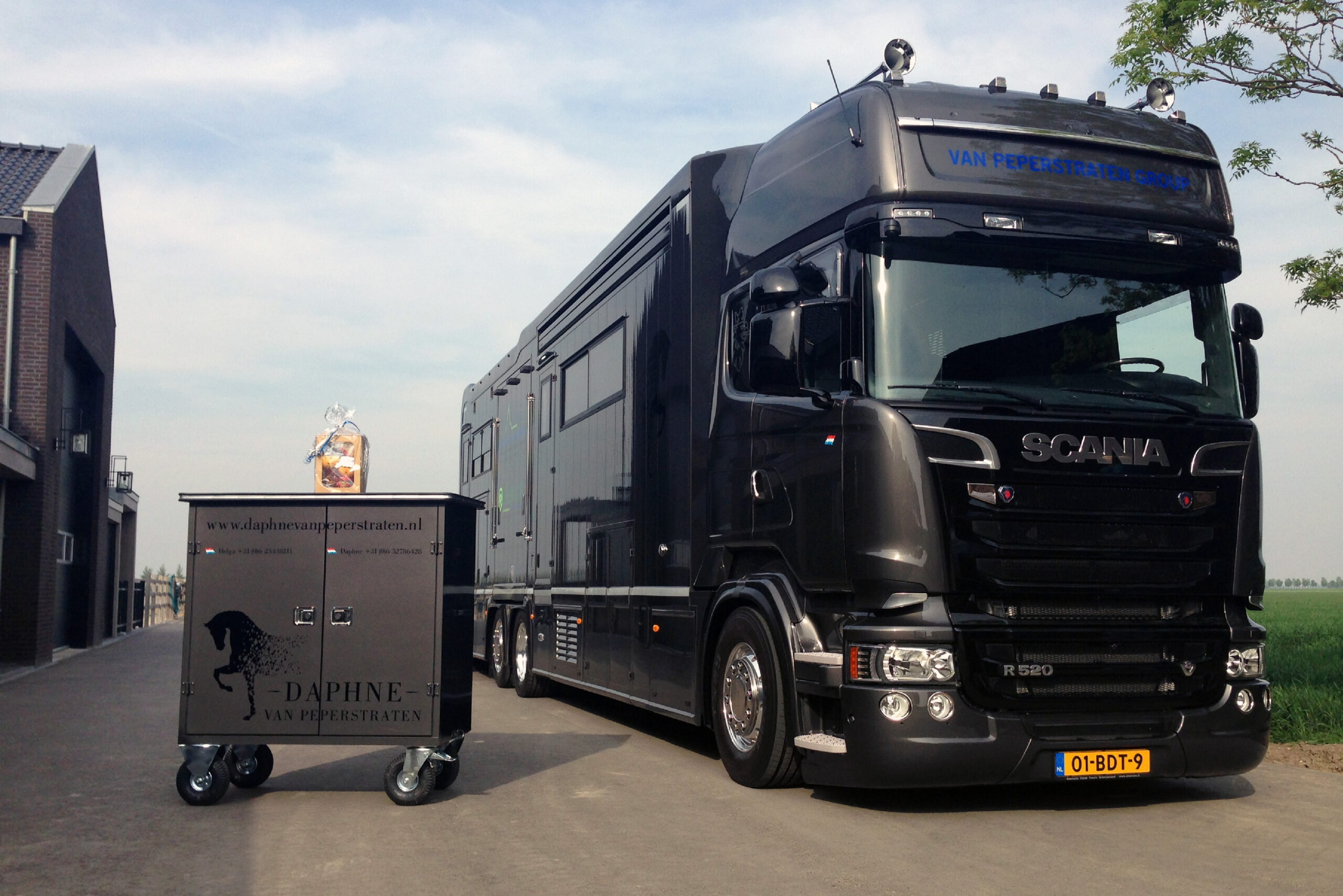 De Van Peperstraten Groep uit Oude Tonge heeft een uit de kluiten gewassen Scania R520 paardenwagen in gebruik genomen. De speciale opbouw is op maat gemaakt door Anemone Horsetrucks, waarbij de wensen van de Van Peperstraten Groep zijn doorgevoerd. De speciale lakkleur die de truck siert is afkomstig uit de catalogus van Porsche. Een opvallende truck, die op internationale concours zeker de nekken zal doen draaien.