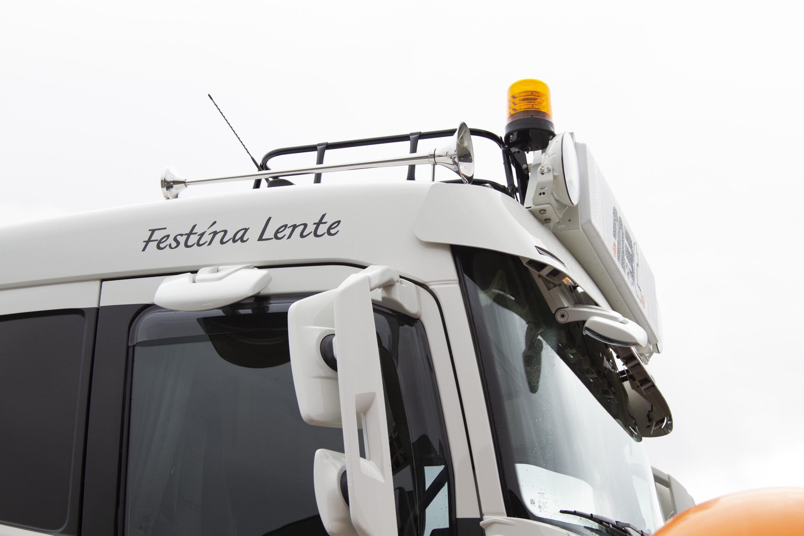 Op alle trucks prijkt de slogan ‘Festina Lente’, oftewel ‘Haast je langzaam’. Op de vraag waarom, antwoordt Marc grappend: “Omdat ik dat leuk vind”… maar er zit veel meer achter. Het is zowel kenmerkend voor de doordachte groei die het bedrijf heeft doorgemaakt als voor de manier waarop Marc en Karin hun medewerkers aansturen. Karin: “Chauffeurs hebben altijd haast, zijn altijd gestrest en gespannen. Terwijl wij zeggen: Rijden is jouw werk. Als chauffeur zit je op de weg en heb je te dealen met de omstandigheden. Het heeft geen zin om alles gehaast te doen en je druk te maken om zaken die buiten je macht liggen. En tja ‘Haastige spoed is zelden goed’ is zo’n lang verhaal, dus daarom ‘festina lente’. Oftewel: Het komt zoals het komt.”