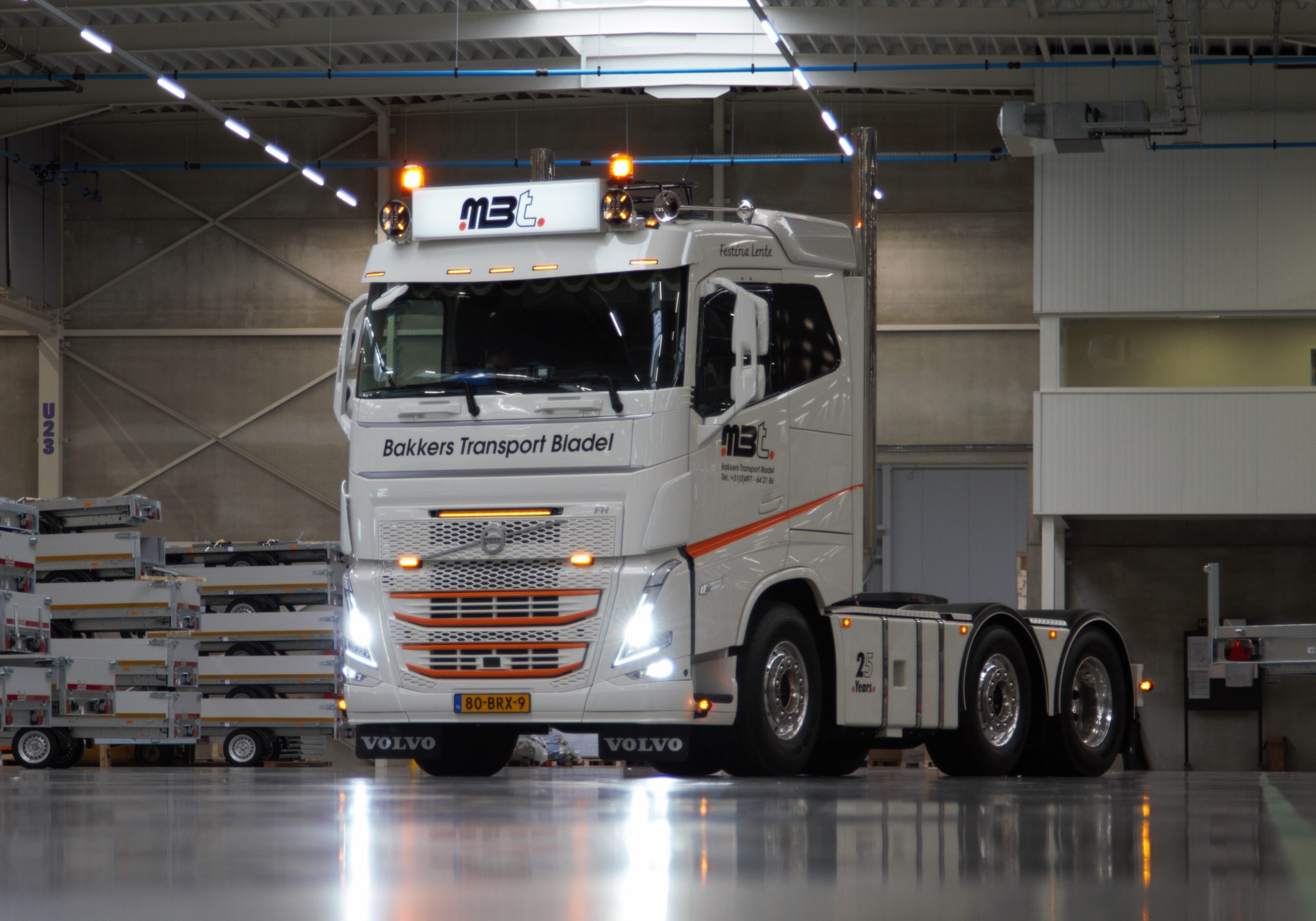 In 1996 zijn Marc en Karin Bakkers gestart met M. Bakkers Transport. Dit jaar bestaat het bedrijf dus 25 jaar. Om dat te vieren werd onlangs een bijzondere jubileumtruck afgeleverd door BAS Truck Center; een oldskool Volvo FH500 6×2 voorloopas trekker met Turbo Compound motor.