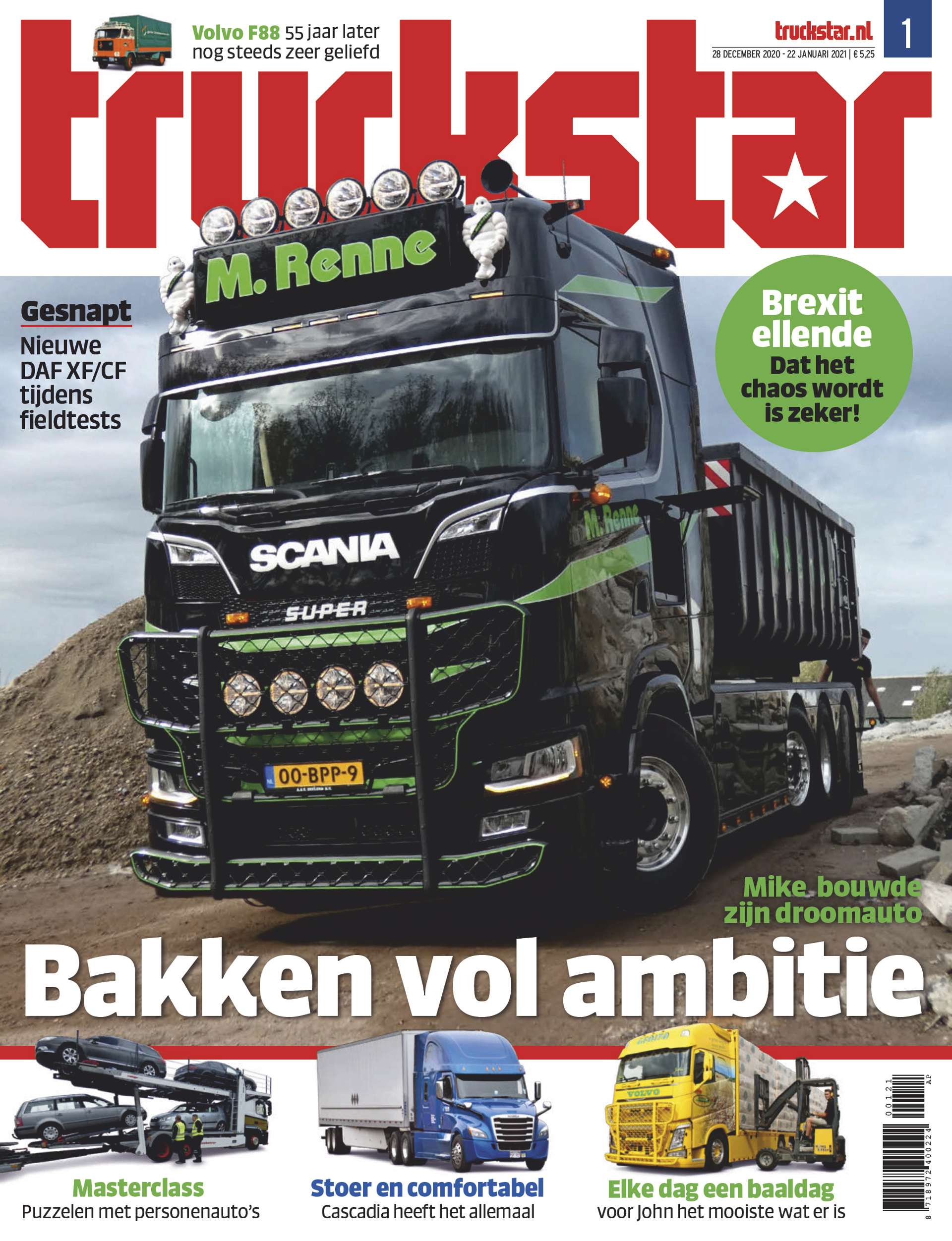 Hard of zacht, wanneer dit nummer verschijnt is de brexit een feit. En ook al zijn de huidige files voor de kanaaltunnel veroorzaakt doordat de Britten snel nog even zonder invoerrechten hun aankopen in de EU doen, op lange wachttijden in de toekomst wordt nu al gerekend. Nog dramatischer dan het gedoe met douaneformaliteiten is dat er vanaf 1 januari ook een einde komt aan de cabotageregeling. Wat dat mogelijk inhoudt lees je in deze Truckstar. Wetten en regels, je staat soms versteld wat de uitwerking daarvan kan zijn wanneer die star worden gehandhaafd. Zo krijgt Gerrie Pol, al 31 jaar chauffeur op een aangepaste vrachtwagen, dit jaar zijn rijbewijs niet verlengd. Een soort toeslagenaffaire met dit keer het CBR in de hoofdrol.