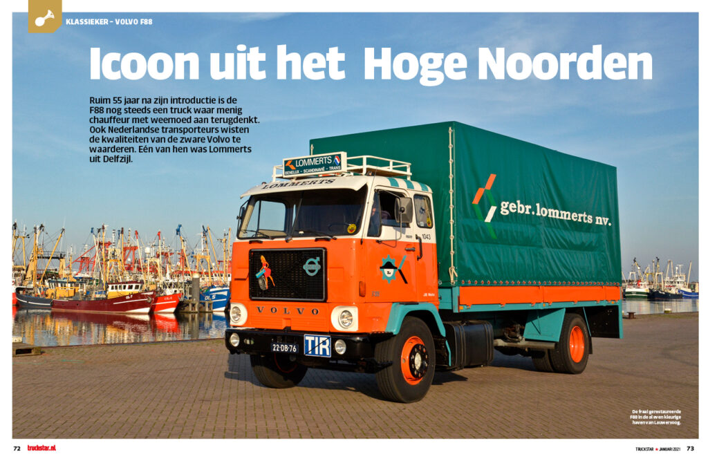 Aan de Volvo F88 denkt menig chauffeur nu 55 jaar na zijn introductie nog met weemoed aan terug. Zo kan Jan-Martijn Westra zich de stoere F88’s van Lommerts nog goed herinneren. Zelf reed hij in de jaren zeventig ook op een F88 en F89, maar dan voor Transportbedrijf Geert de Vries in Beetgum het liefst op de internationale routes. ,,Ik reed met de F88 en F89 veel aardappels naar Frankrijk en met eikenhout terug. Vaak twee ritten in de week. Later werd dat Zuid-Italië met Coca-Cola of babyvoeding. Dat was flink aanpoten, maar toen kon je nog gewoon doortrekken. Controle op de rij- en rusttijden was er nauwelijks.’’