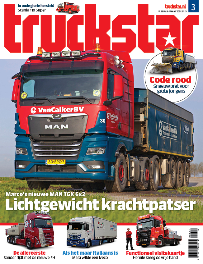 Je vindt uiteraard niet alleen sneeuwpret en avondklokellende in deze Truckstar. We delen ook de ervaringen van Mara Wiewall met haar Iveco S-way in Italië, bewonderen de blikvangers van familie De Block, gaan een dagje mee met Marco Mameli in zijn nieuwe MAN TGX  28.470 en zien hoe Hennie Hubers met zijn nieuwe Scania met 50-ton meter HMF-autolaadkraan de meest gevarieerde hijsklussen voor zijn rekening neemt.