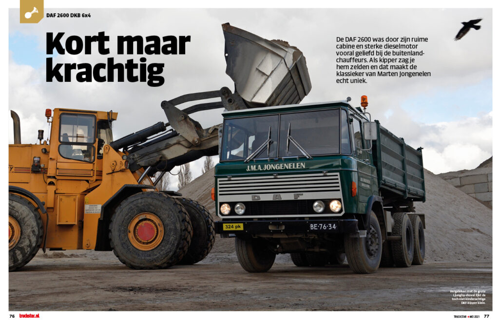 Het merk DAF kan bij Marten op een warme belangstelling rekenen. ,,Omdat mijn vader kipperchauffeur was geweest, leek zo’n wagen mij het leukst om te bezitten, maar dan moest het wel een type 2600 zijn en eentje met een turbomotor, want dat leek mij wel apart.” De DAF 2600 was door zijn ruime cabine en sterke dieselmotor vooral geliefd bij de buitenlandchauffeurs. Als kipper zag je hem zelden en dat maakt de klassieker van Marten Jongenelen echt uniek.