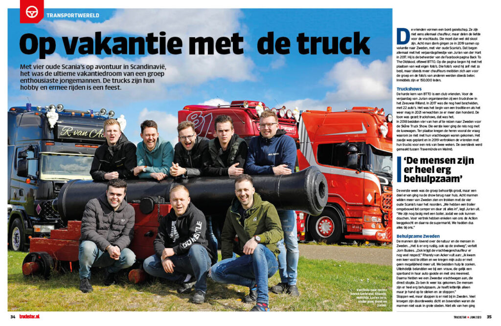 Met vier oude Scania’s op avontuur in Scandinavië. De ultieme vakantiedroom van een groep enthousiaste jongemannen. De vrienden vormen een bont gezelschap. Ze zijn niet eens allemaal chauffeur, maar delen de liefde voor de vrachtauto. Die moet dan wel old skool zijn. In 2018 besloten vier van hen af te reizen naar Zweden voor de Skåne Truck Show. Die eerste keer ging de reis nog met de luxewagen. Ter plaatse kregen de heren vooral de vraag waarom ze niet met hun vrachtwagen waren gekomen. Het zaadje was geplant en in 2019 vertrokken de vrienden met hun trucks samen op vakantie met vier oude Scania’s naar Zweden.