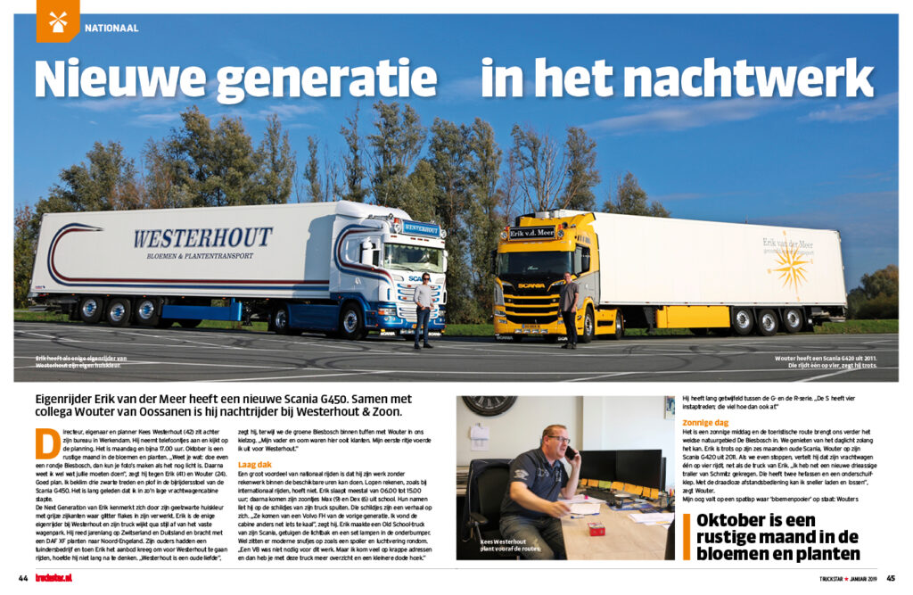 De trucks van Westerhout vertonen zich zelden overdag. De activiteiten vinden dan ook voornamelijk ’s nachts plaats. Maak kennis met Erik van der Meer en zijn collega Wouter van Oossanen, nachtrijders van bloemen en planten voor Westerhout.
