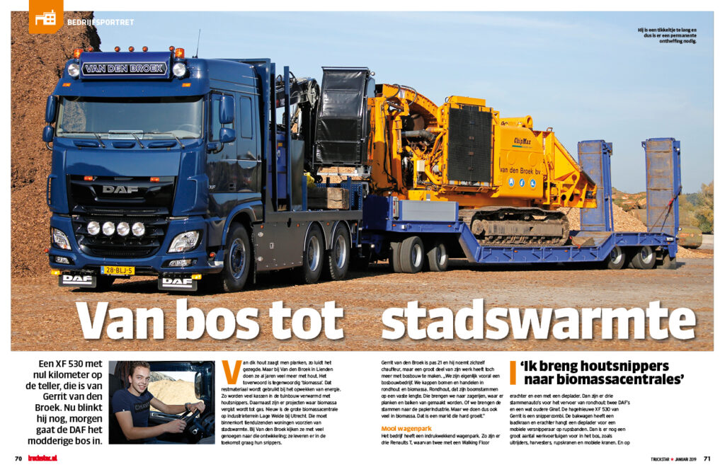 De XF530 van Gerrit van den Broek blinkt ons tegemoet. Niet zo vreemd, want er is nog geen kilometer mee gereden. Daar komt morgen snel een eind aan, want dan gaat hij met zijn truck, kraan en versnipperaar het modderige bos in.