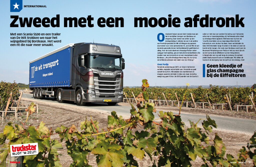 Met een Scania S500 en een trailer vol kerstspullen rijden we voor De Wit naar Bordeaux, om daar bij meerdere adressen wijn terug te laden. Het werd een rit met een mooie afdronk…