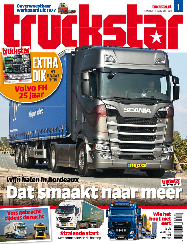 Op de valreep van 2018 beleven we nog wat mooie nostalgische momenten. Samen met Volvo vieren we het 25 jarig jubileum van de FH, en concluderen we dat de Volvo FH ons al die jaren steeds opnieuw wist te verrassen. In de klassieker treffen we dit keer een andere held van weleer, de Scania LBS141 met V8-motor uit 1977. Rond deze periode starten de zwaarste rally’s ter wereld, in deze Truckstar een kennismaking met de rijders die Nederland vertegenwoordigen. Uiteraard ontbreken ook de binnen- en buitenlandreportages niet en geven we je een kijkje in de toekomst van de dieselmotor. Hieronder gunnen we je alvast een kleine vooruitblik van dit nummer. Uiteraard wil je hierna méér. Dat kan, want Truckstar nummer 1 ligt nu in de winkel. Geen gelegenheid? Truckstar is ook online te bestellen. Dan krijg je hem gewoon thuisgestuurd. En wil je echt niets missen, word dan abonnee – dan vind je Truckstar voortaan gewoon in de brievenbus en hoef je niets meer te missen!