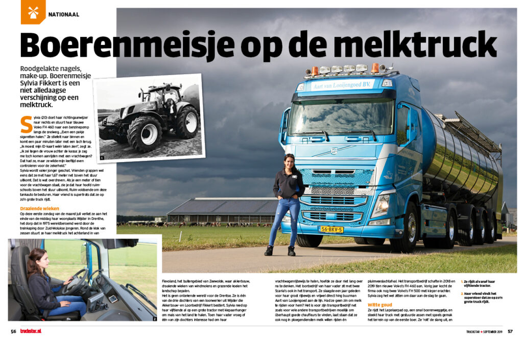Sylvia Fikkert is, met haar roodgelakte nagels en make-up een niet alledaagse verschijning op de melktruck. Daarnaast lijkt ze jonger dan haar twintig lentes en maken haar vrienden grappen dat ze met haar 1,67 meter net boven het stuur uitkomt. Dat is wat overdreven. Als je een meter of tien voor de vrachtwagen staat, zie je dat haar hoofd ruimschoots boven het stuur uitkomt. Ruim voldoende om een tankauto te besturen.