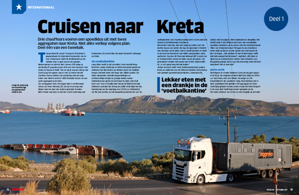 Het is prachtig rijden over de kustweg van Patras naar Korinthe. We gaan mee met de chauffeurs van Jansen Transport uit Drempt voor het spoedtransport van een aggregaat, dat van Milaan naar Kreta moet. In dit nummer het eerste deel van een bijzonder en avontuurlijke transport.