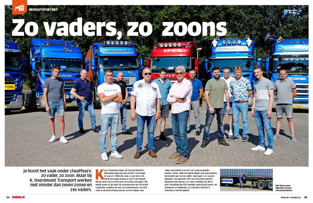 Overdevest Transport is niet alleen een ‘gewoon’ familiebedrijf, zo een waarbij meerdere familieleden werkzaam zijn in het transportbedrijf van de naamgever. Nee, bij Overdevest gaat het verder. Het is zogezegd een familiebedrijf-plus. Hier gaat het ‘zo vader zo zoon’ maar liefst zes, nee zeven keer op.
