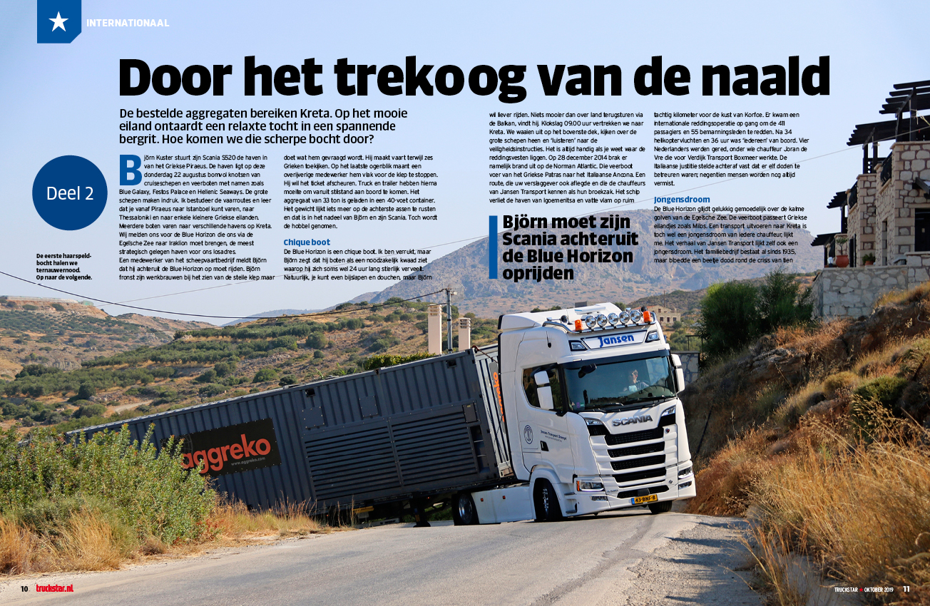 De spoedklus met twee aggregaten naar Kreta heeft heel wat voeten in de aarde. In Truckstar nr 10 stopten we bij de overtocht naar Kreta. In het laatste deel van dit tweeluik ontaardt een relaxte tocht over het mooie eiland in een spannende bergtocht, waarbij we met kunst en vliegwerk een scherpe bocht door moeten zien te komen.
