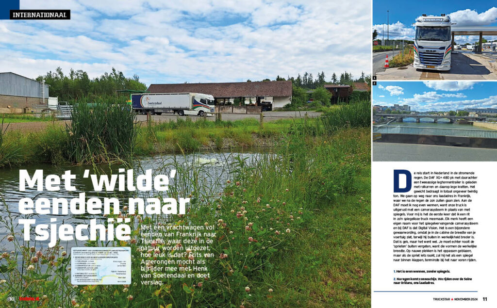 In Frankrijk, bij Orléans, gaan we ‘wilde’ eenden laden, deze zijn ongeveer vijfenhalve week oud. Nadat de eenden één voor één in een krat zijn geplaatst en de drinkwater- en voedingsleidingen zijn aangebracht, kan de reis beginnen. Eerst richting München, waar ter hoogte van Rosenheim een eerste losadres is. Vervolgens naar Tsjechië waar de eenden op verschillende buitenplaatsen hun vrijheid terug krijgen. Frits van Amerongen mocht als bijrijder mee met Henk van Soetendaal en doet verslag.