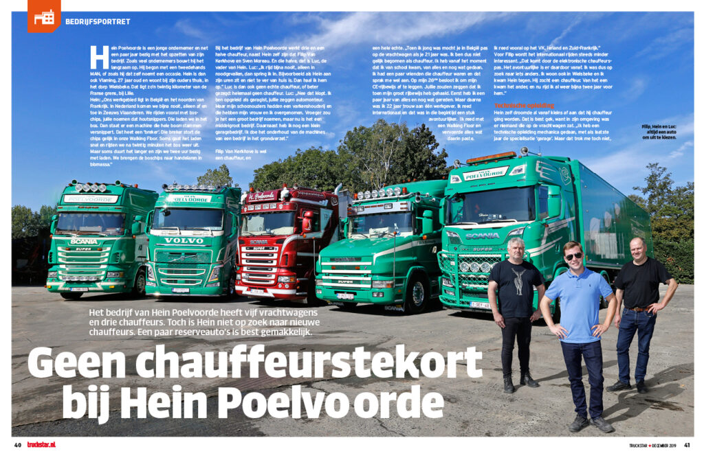 Bij Hein Poelvoorde zijn drie chauffeurs in dienst, terwijl er vijf trucks voorhanden zijn. Toch is er geen sprake van een personeelstekort. Hein is namelijk best tevreden zo. Twee reserve-auto’s komen altijd van pas. Een bedrijfsportret.