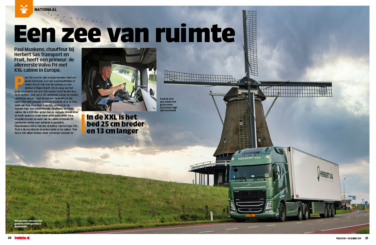 Paul Muskens mocht tijdens het Truckstar Festival de eerste Volvo FH met XXL cabine in ontvangst nemen. We gaven hem even een paar maanden de tijd om te wennen. Maar nu willen we toch wel eens weten hoe dat nu bevalt, zo’n zee van ruimte.