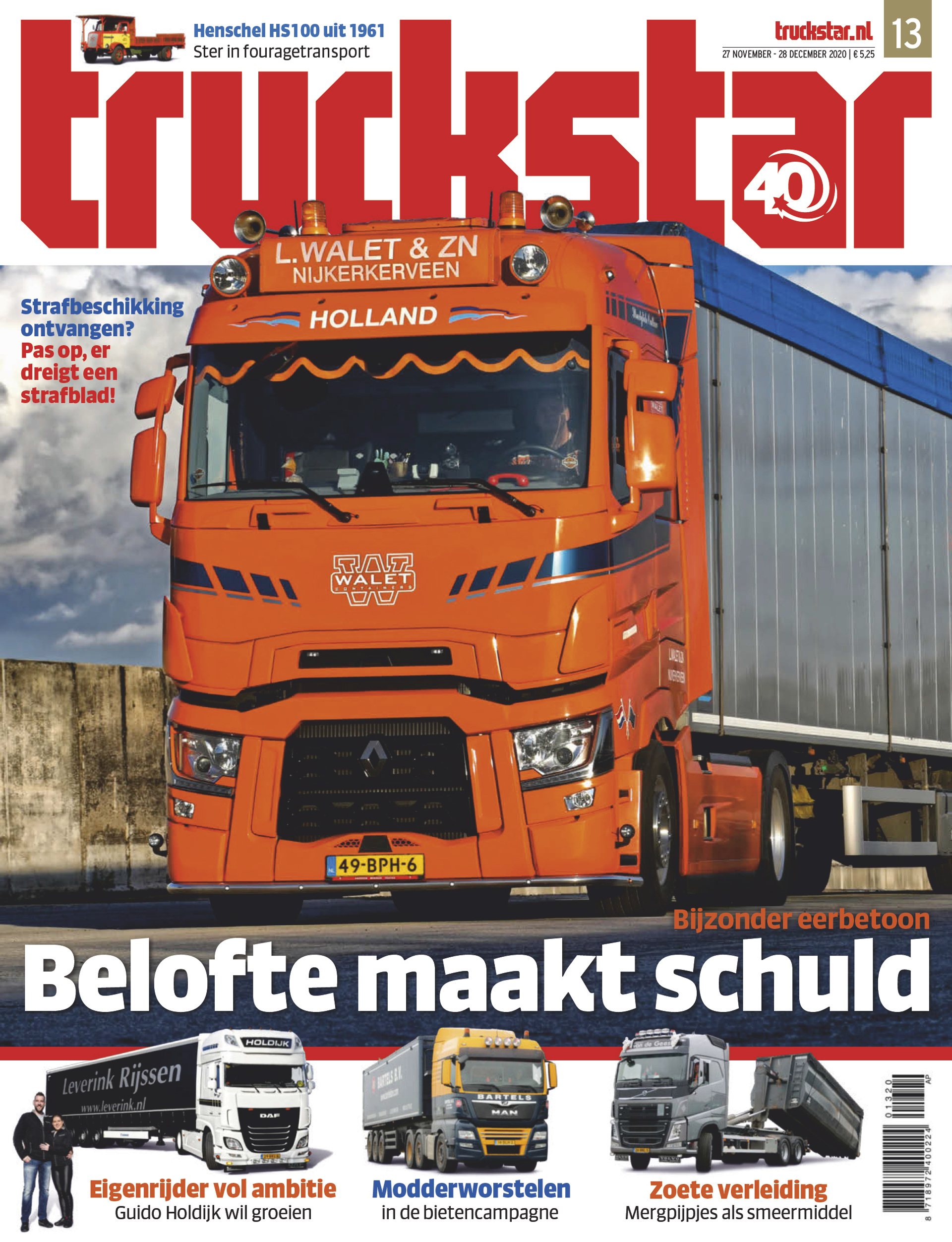 In dit nummer halen we herinneringen op aan de Truckstar Festivals van 2005 tot 2019. Maar we kijken uiteraard ook vooruit – zo vind je in dit nummer een rij-impressie met de DAF low-deck die nu een nog lagere schotelhoogte heeft en gaat Ginaf zich weer helemaal toeleggen op de Nederlandse markt. Ook nemen we de waarschuwing van Mark Mud ter harte, om vooral niet te snel akkoord te gaan met een strafbeschikking. Hoe dat zit? Dat en nog veel meer lees je in deze uitgave.