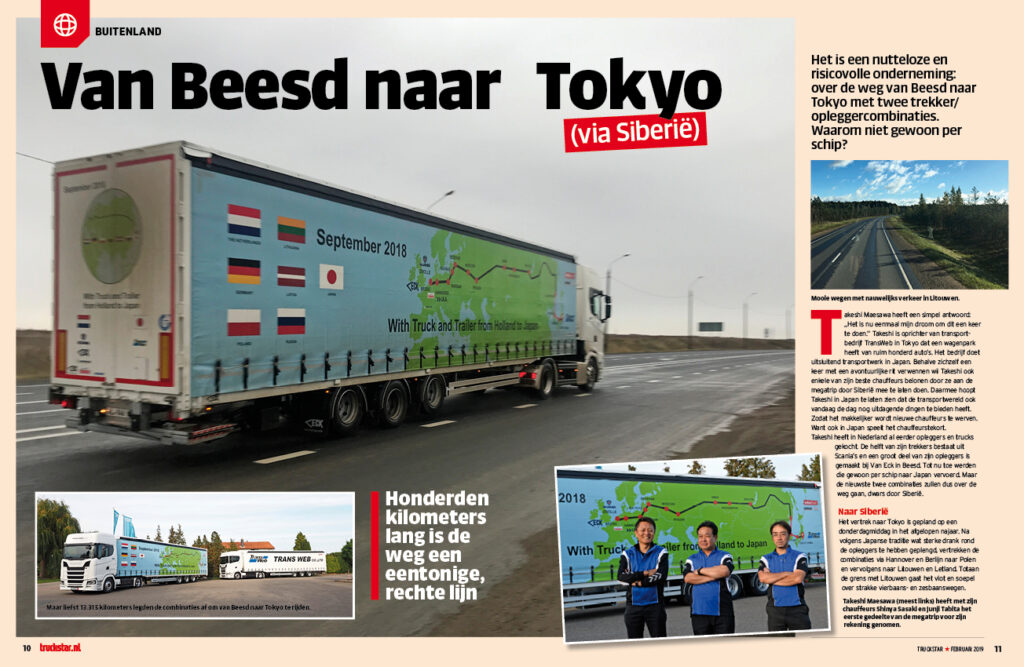 Twee splinternieuwe combinaties kocht de Japanse transportondernemer Maesawa in Nederland. En om ze maar gelijk eens goed uit te proberen, besloot hij ze, samen met zijn chauffeurs, over de weg naar Tokyo te rijden. Een forse rit dwars door Siberië.