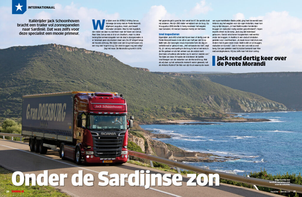 Op zonnig Sardinië kunnen ze wel wat extra zonnepanelen gebruiken. En omdat we zelf ook wel in zijn voor een beetje extra vitamine D gaan we mee met eigenrijder Jack Schoonhoven, als die een lading in de buurt van Ollolai moet afleveren. Maar voordat we daar zijn moeten we eerst de barricades van de ‘gele hesjes’ slechten.