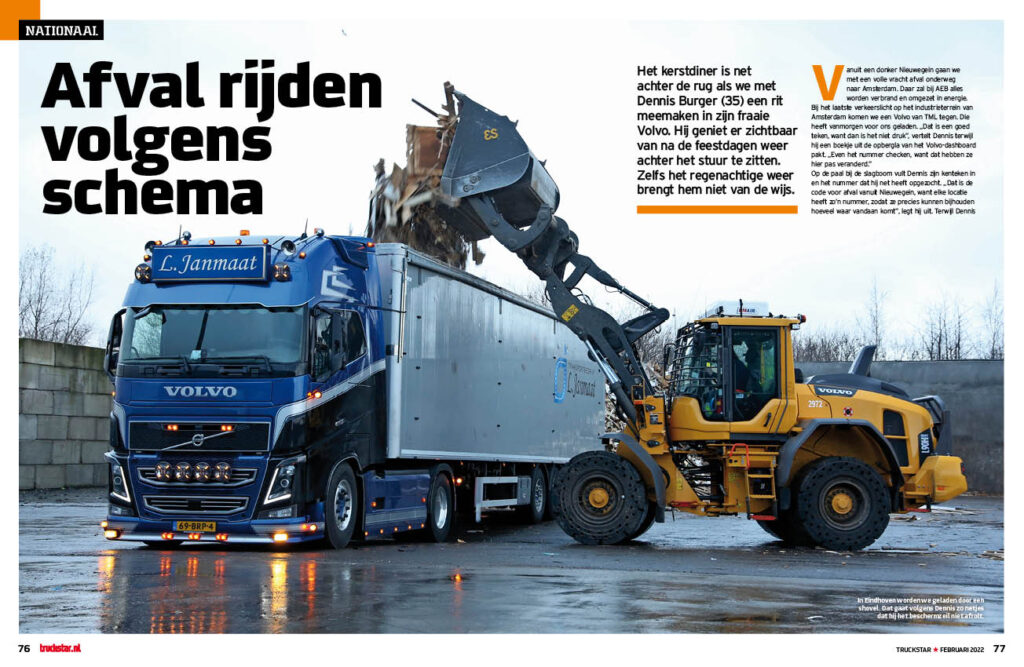 Nog maar een paar maanden rijdt Dennis Burger (35) met een schuifvloeroplegger bij Laurens Janmaat. Na vijftienjaar in de distributie, afgewisseld met af en toe een tanktrailer, was het tijd voor wat nieuws. Dennis viel gelijk met zijn neus in de boter. De vacature was voor de nieuwste Volvo binnen het uit drie trucks bestaande wagenpark van Laurens Janmaat (24). „Dit was de eerste nieuwe vrachtwagen die hij kocht en hij is nu dik een half jaar oud”, vertelt Dennis. Met een eigen schuifvloeroplegger rijdt hij voor TML. „Met ons vijven rijden we in het losgestort door Nederland”, aldus Dennis.