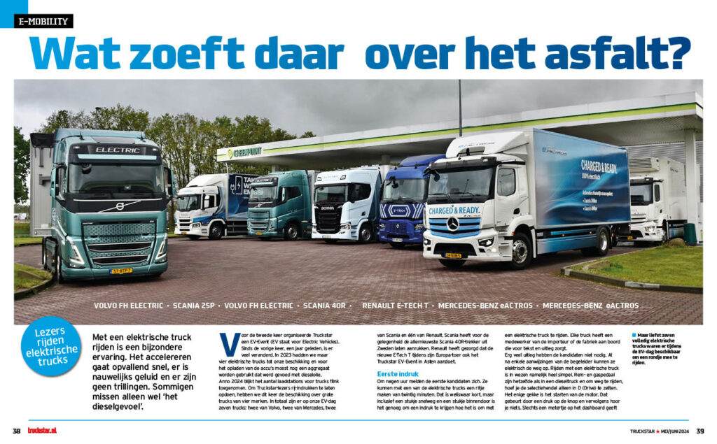 Voor de tweede keer organiseerde Truckstar een EV-dag en sinds de vorige keer, een jaar geleden, is er veel veranderd. Zo hebben we dit keer de beschikking over grote trucks van vier merken, twee van Volvo, twee van Mercedes, twee van Scania en één van Renault. Scania heeft voor de gelegenheid de allernieuwste Scania 40R-trekker uit Zweden laten aanrukken. Renault heeft gezorgd dat de nieuwe E-Tech T Elektrisch tijdens zijn Europatoer ook de EV-dag in Asten aandoet.