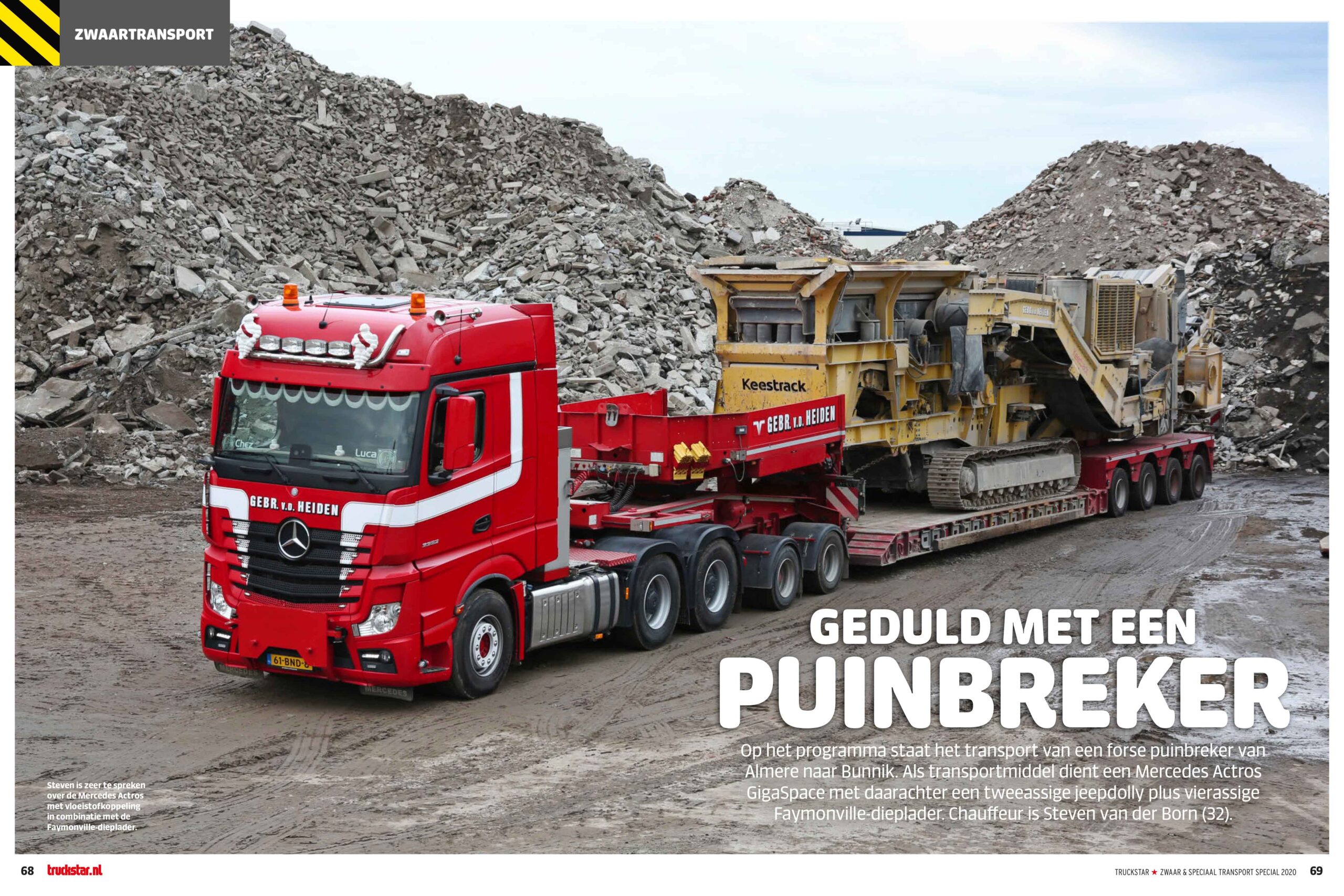 Op het programma staat het transport van een forse puinbreker van Almere naar Bunnik. Als transportmiddel dient een Mercedes Actros GigaSpace met daarachter een tweeassige jeepdolly plus vierassige Faymonville-dieplader. Chauffeur is Stefan van der Born (32).