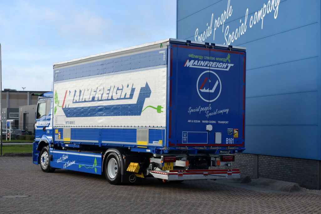 Mainfreight Transport ’s-Heerenberg heeft de eerste MAN eTGS bakwagen in Nederland in gebruik genomen. Daarmee heeft het bedrijf een primeur in huis. Met deze volledig elektrische truck kan Mainfreight tot maximaal 450 kilometer afleggen tussen de laadbeurten.