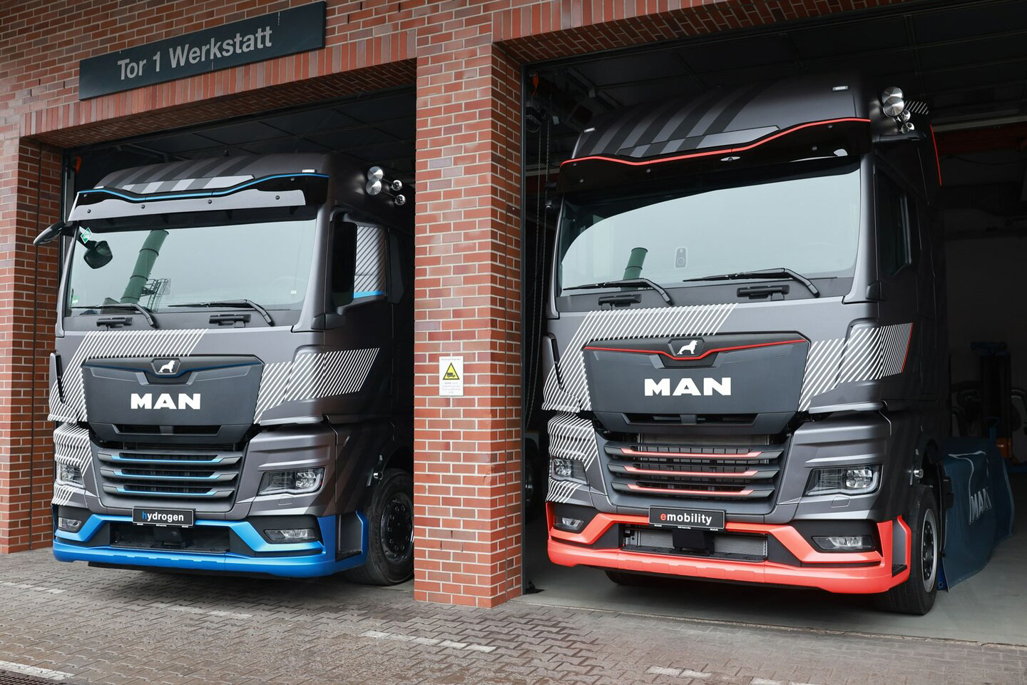 MAN presenteerde deze week in Neurenberg voor het eerst een nagenoeg productierijp prototype van de nieuwe elektrische TGX. Naast het versnellen van de opmars van elektromobiliteit, intensiveert MAN tevens zijn onderzoek naar waterstofaandrijving. Daartoe hebben de Beierse minister-president Markus Söder en de Beierse minister van Economische Zaken Hubert Aiwanger afgelopen week een financieringstoezegging van 8,5 miljoen euro gepresenteerd voor het project ‘Beierse Vloot’ (Bayernflotte).