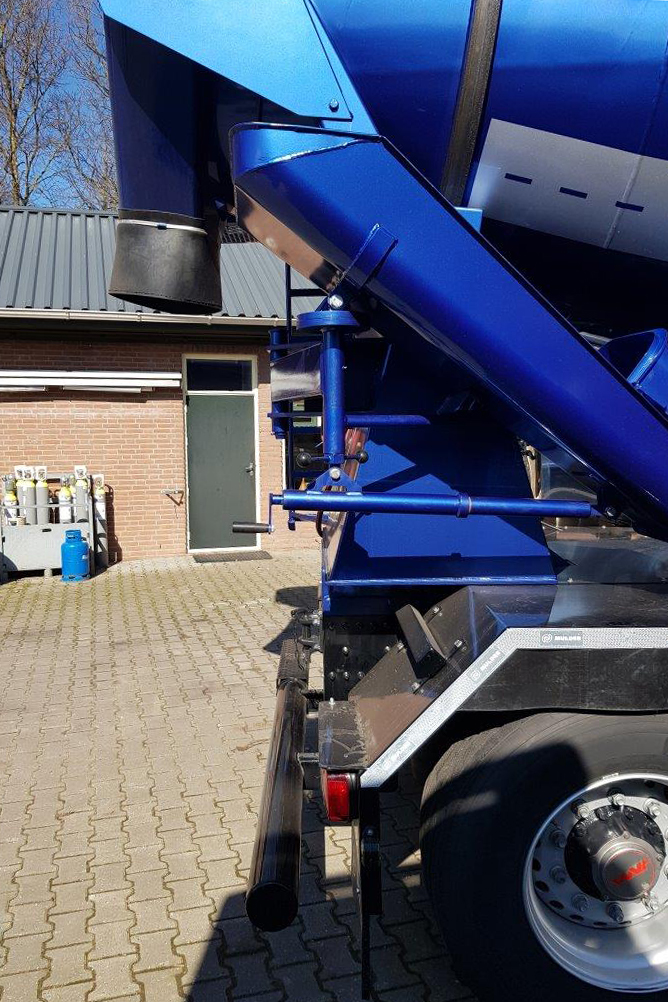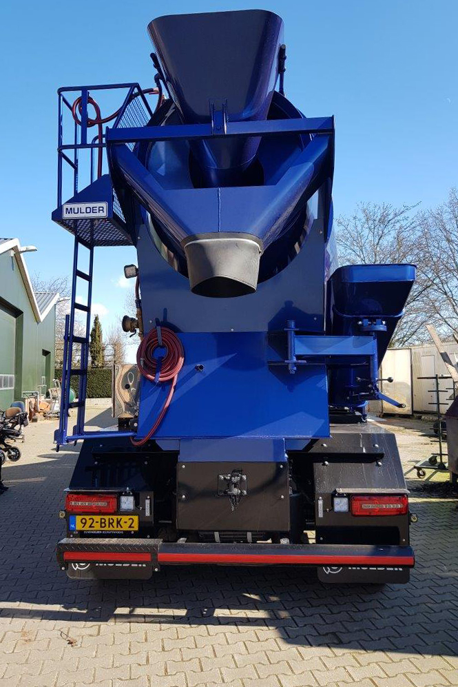Deze truck is door Mulder uit Dordrecht voorzien van een 16m3 betonmixer, gespoten in de kleur blauw metallic en voorzien van de nodige opties. Bij deze betonmixer zijn alle assen maximaal gebruikt. De Mulder H-16 betonmixer benut het gehele chassis waardoor er een rechte achterzijde ontstaat. Op deze manier kan er direct in een staande kubel gelost worden. Daarnaast is de mixer ook gemakkelijk schoon te houden en gebruiksvriendelijk.