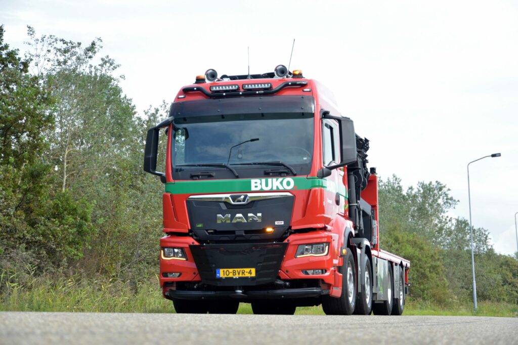 MAN Truck & Bus heeft in samenwerking met MAN-dealer BTS aan Buko Transport in Beverwijk een zeer speciale nieuwe MAN TGS 40.470 afgeleverd. Deze MAN is uitgevoerd met een 470 pk Euro 6E motor goedgekeurd voor 100% HVO, een volledig elektrisch werkende 92 tonmeter Palfinger autolaadkraan en een gewicht onder de 30 ton.