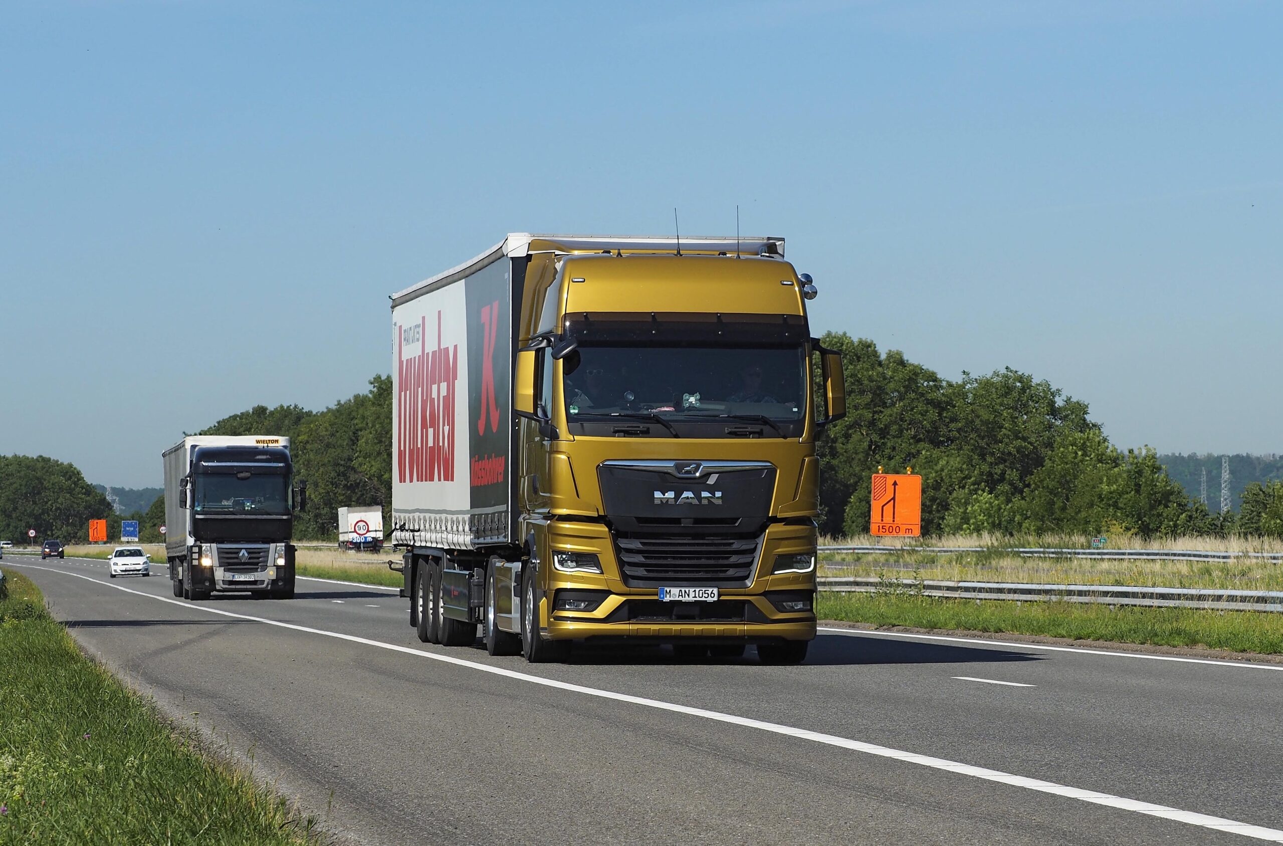 Afgezien daarvan is het een genot om te rijden met de truck. Bij onze 80 km/u maakt de motor slechts 1.000 omwentelingen en die houdt dat dankzij het hoge koppel lang vast. Op de helling doet de elektronica er gauw twee stappen af en zet die het toerental daarmee rond de 1.300. Zo krijg je behalve je 2.600 Nm ook het overgrote deel van je 510 pk. Je rijdt dus, net als bij de vorige generatie, nog steeds op zowel koppel als maximum vermogen omhoog. Dat het gevoel van die brute 510 pk een beetje weg is, komt puur door die lange overbrenging. We zeiden het echter al: ook de andere merken doen het tegenwoordig zo. Overigens levert MAN desgevraagd ook kortere overbrengingen, tot 2,81:1. Wat dat met het verbruik doet, laat zich raden.