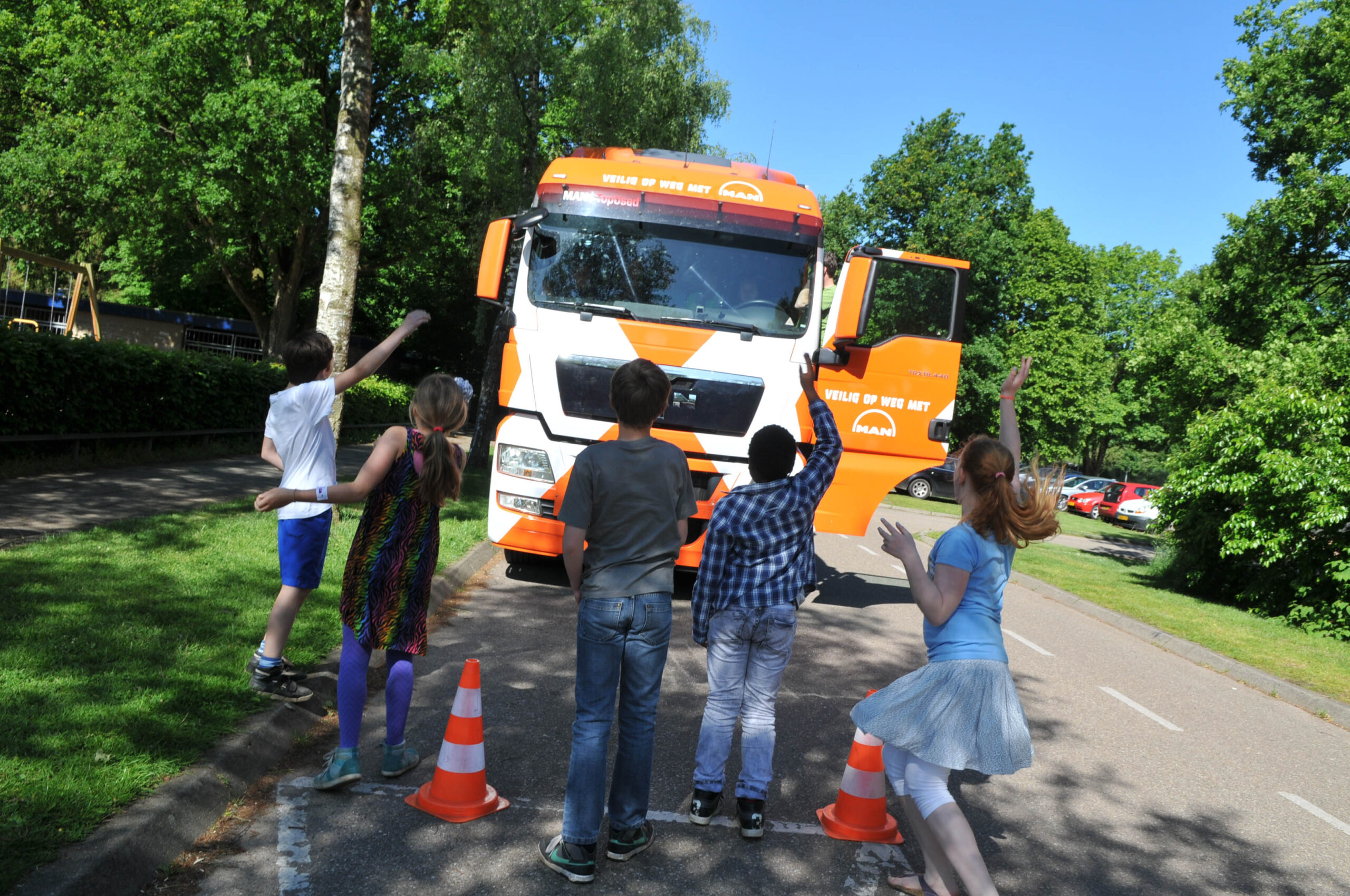 MAN Nederland heeft een TGX 18.440 beschikbaar gesteld voor het programma Veilig op Weg. De TGX trekt door het land en bezoekt basisscholen.