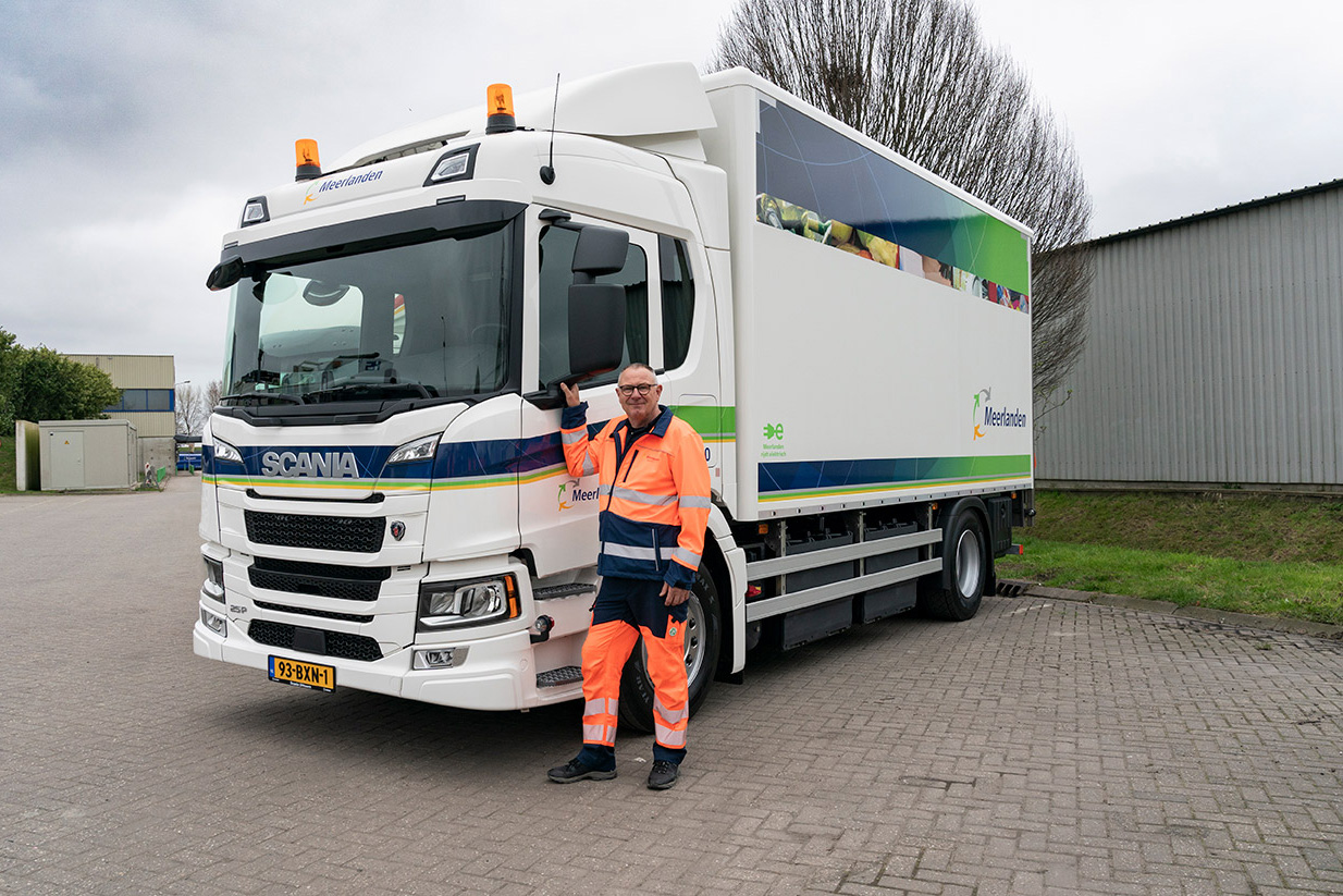 Meerlanden is binnen Haarlemmermeer en wijde omgeving verantwoordelijk voor het beheer en onderhoud van de openbare ruimte, het inzamelen van afval- en grondstoffen en het schoonhouden van de leefomgeving. Met de ingebruikname van een elektrische Scania 25P werd een volgende stap gezet in emissieloze afvalinzameling.
