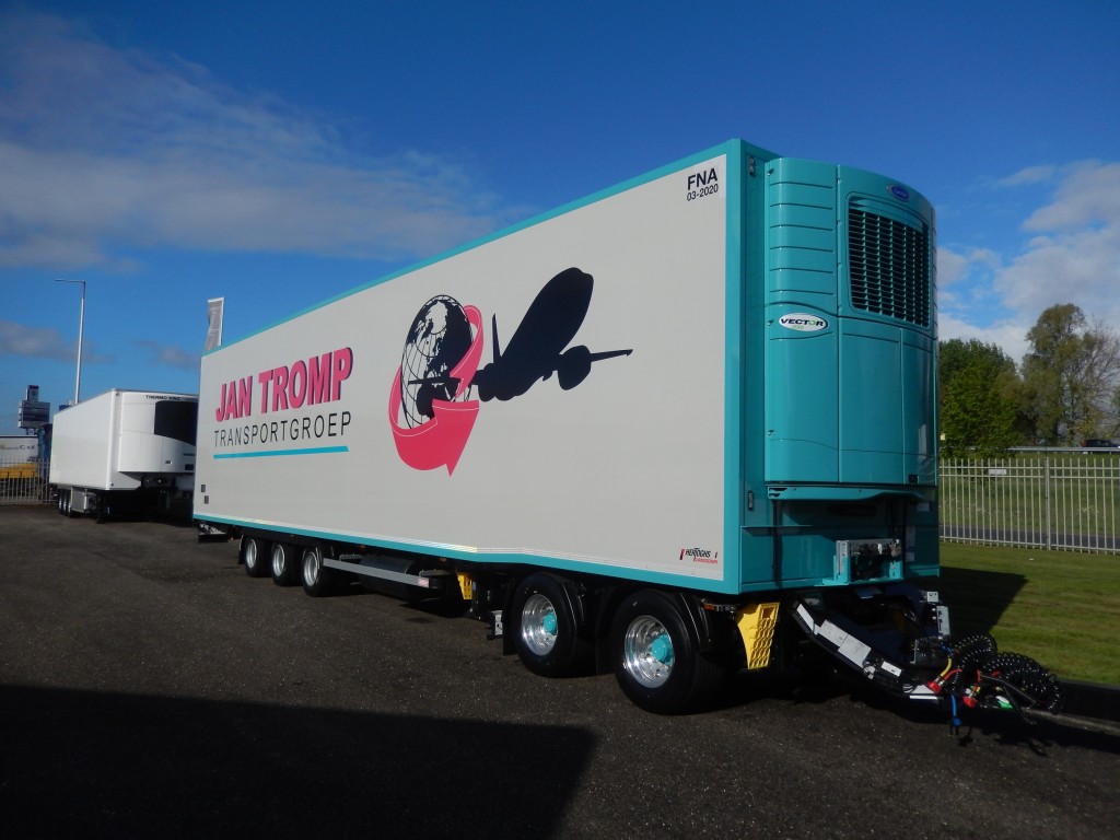 Jan Tromp uit Eindhoven heeft bij Hertoghs Carrosserieën een dollychassis en een FNA gecertificeerde Airfreight mega koeler aangeschaft om deze in te kunnen zetten als achterste voertuig in een LZV combinatie.