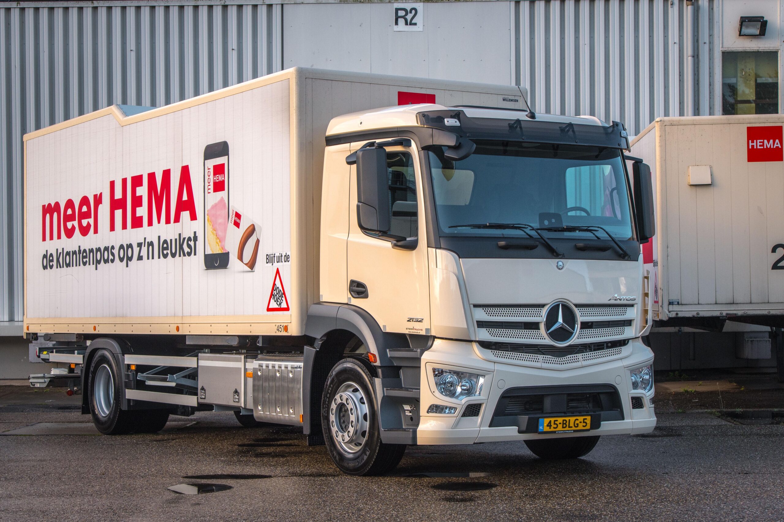 Winkelketen HEMA heeft voor de distributie naar haar vestigingen de eerste zes Mercedes-Benz Antos trucks in gebruik genomen. Om in de praktijk een goede vergelijking te kunnen maken voor wat betreft het brandstofverbruik en de onderhoudskosten, besloot HEMA een tweede merk aan het wagenpark toe te voegen. De Antos 2132 trucks met ClassicSpace-Cabine werden via Mercedes-Benz Financial Services aangeschaft op basis van een jaarkilometrage van 100.000 en voor de duur van zeven jaar. De cabines zijn voorzien van een opklapbed zodat de chauffeurs, die vaak vroeg beginnen, in de rusttijden ook echt kunnen ontspannen. Alle Antos trucks zijn voorzien van extra veiligheidssytemen die in de stedelijke distributie het verschil kunnen maken. Noodremassistent Active Brake Assist 4 reageert namelijk ook op voetgangers en fietsers. Voor veiligheid in de dode hoek heeft Mercedes-Benz Trucks Sideguard Assist ontwikkeld. Ook dit systeem helpt de chauffeurs van HEMA veilig door het drukke stadsverkeer te bewegen.