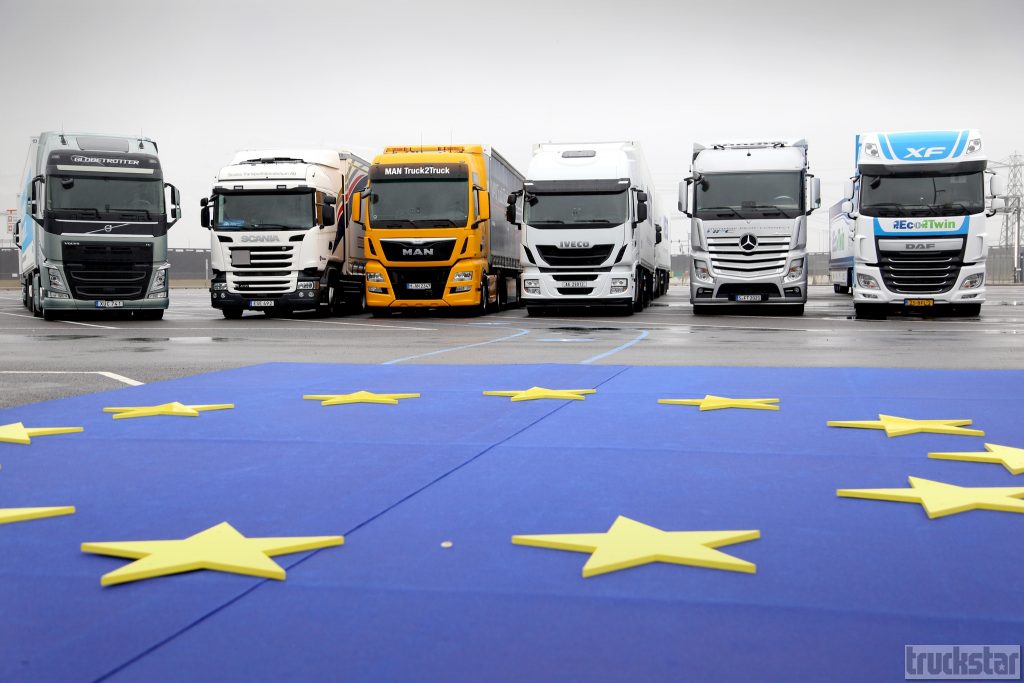 In 2017 nog geen Mercedes bij het platooning-experiment.
