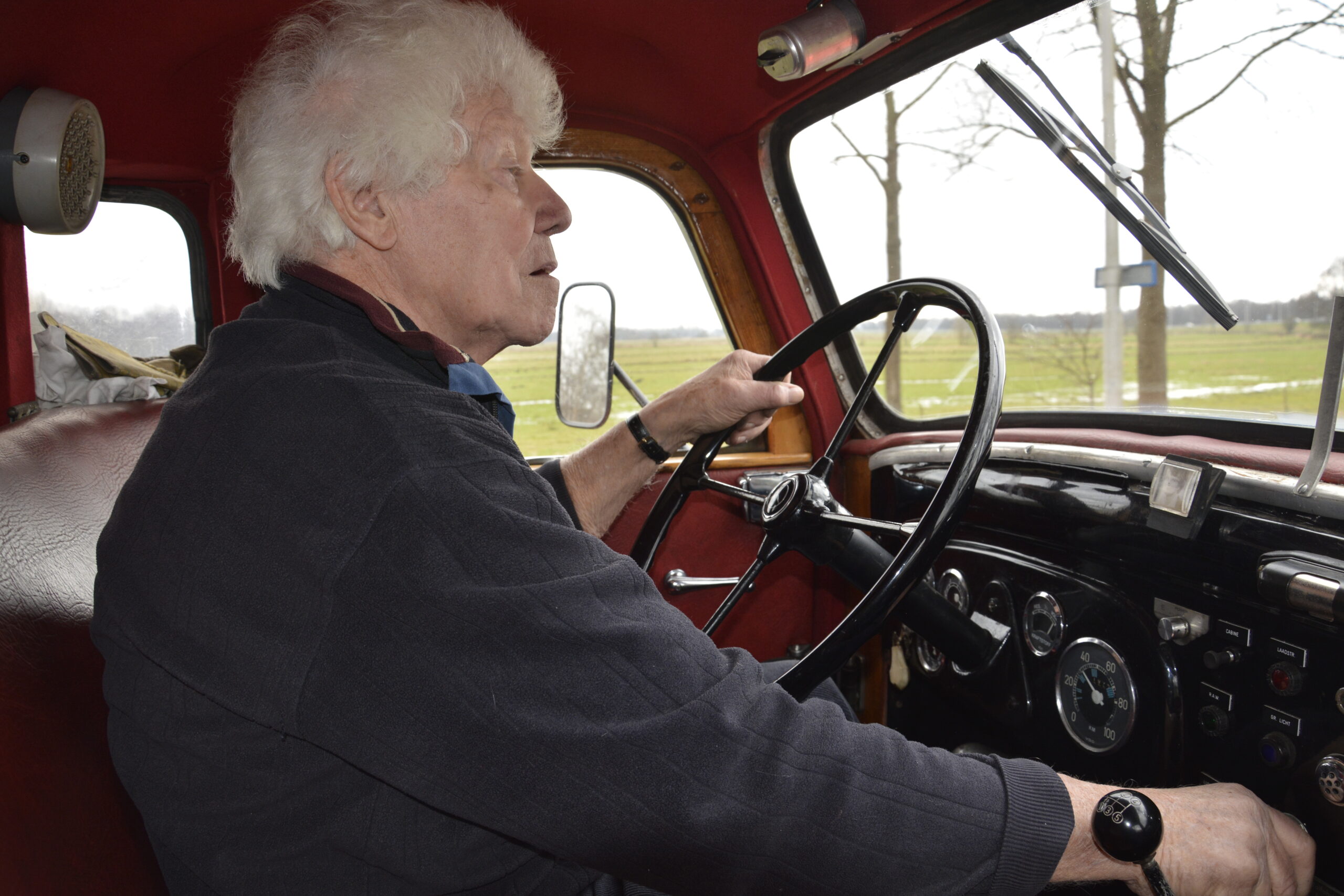 Kars Eitens uit Haren begon zijn loopbaan als chauffeur op een Mercedes Benz-met-neus, een L312. Zestig jaar later zit hij achter het stuur van een door hem zelf gerestaureerde L312.