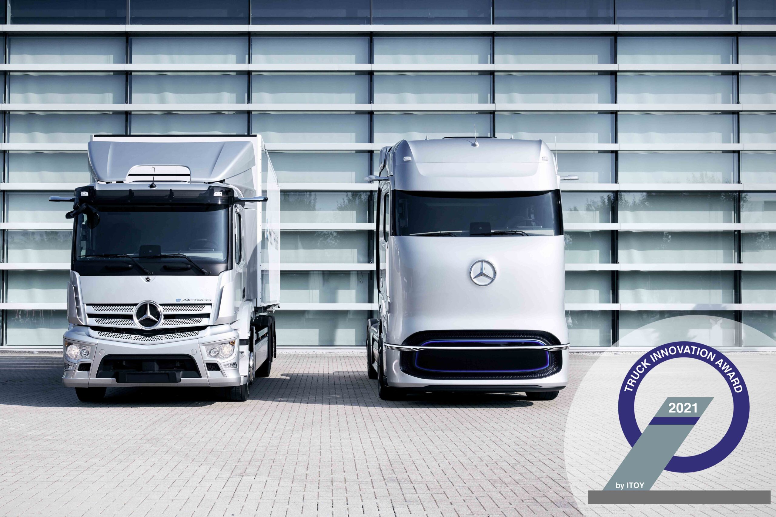 De onderscheiding werd vandaag digitaal overhandigd aan Martin Daum. Hij is voorzitter van de raad van bestuur van Daimler Truck AG en lid van de raad van bestuur van Daimler AG. Martin Daum: “We zijn vereerd en trots dat de gerenommeerde ITOY jury onze eActros en GenH2 heeft bekroond met de prestigieuze Truck Innovation Award 2021. Dit is een mooie bevestiging dat we op de goede weg zijn met onze strategie. Deze focust duidelijk op CO2-neutrale technologieën met accu- en brandstofcelaandrijving. Door deze combinatie kunnen we onze klanten de beste opties bieden afhankelijk van de inzet. Met de eActros hebben we aangetoond dat lokaal emissievrije stadsdistributie vandaag al mogelijk is. Met de Mercedes-Benz GenH2 presenteren we een specifiek concept voor zware vrachtwagens met brandstofcel voor het veeleisende lange afstandstransport.”