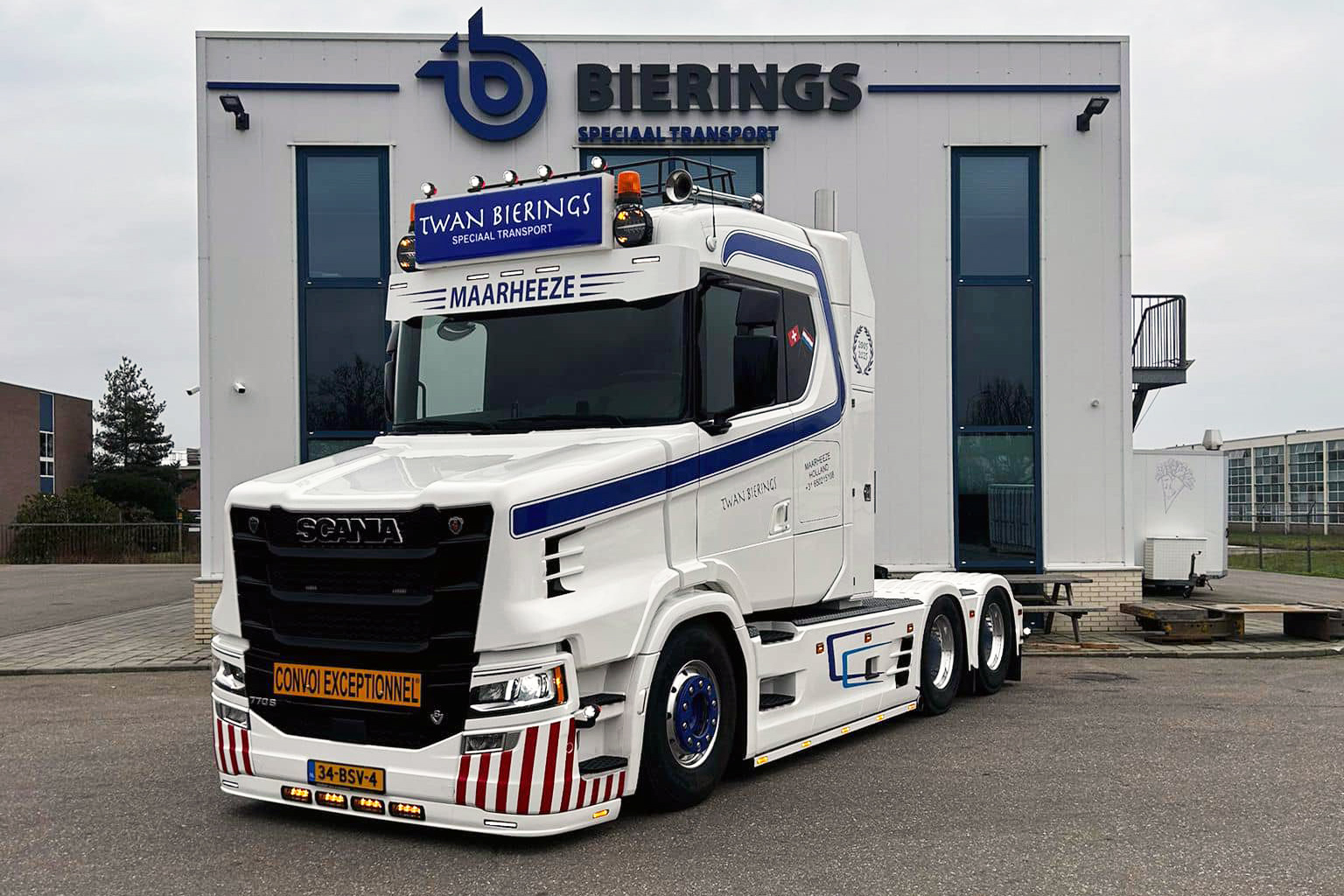 Twan Bierings Transport uit Maarheeze heeft een bijzondere aanwinst in de vloot: een Scania 770T 6×2 Torpedo. Hoewel de truck nieuw is voor Bierings is het een oude bekende van Truckstar.