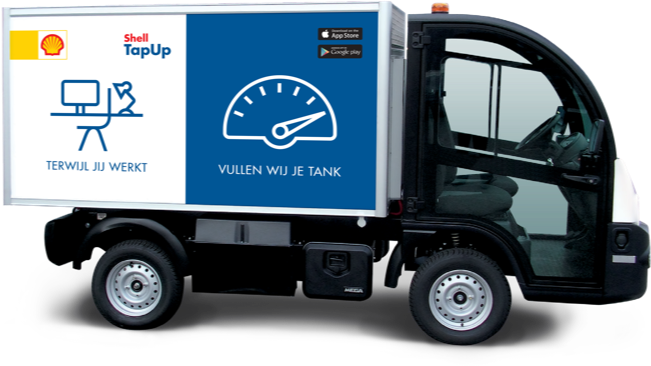 Shell is vorige week in Rotterdam begonnen met de bezorging van benzine en diesel. Automobilisten kunnen via TapUp in de Rotterdamse wijken Overschie, Hilligersberg Zuid, Park Zestienhoven, Terbregge en bij de Van Nelle fabriek brandstof laten bezorgen. Dat gebeurt met een elektrisch bestelwagentje, dat genoeg benzine en diesel voor ongeveer tien auto’s kan meenemen.
